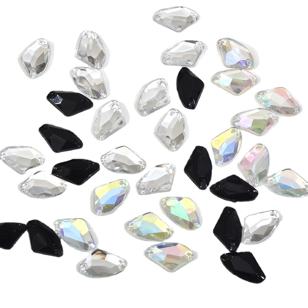 Taiwan Acrylic Hand-Stitched Double-Hole Flat-Bottom Irregular Ice Cube Drill Fashion Accessories for Clothing and Shoes: Axe-Shaped Decorative Drill