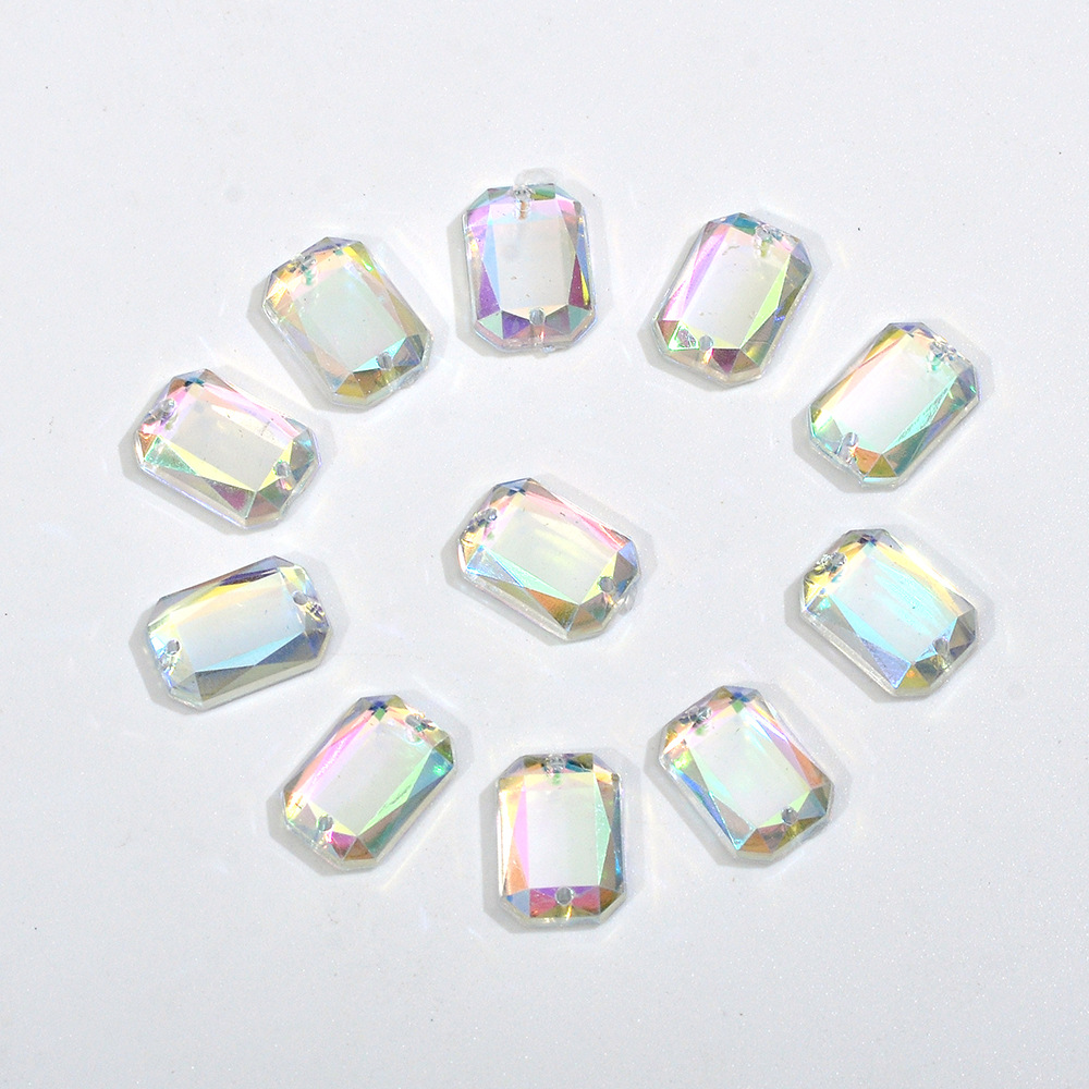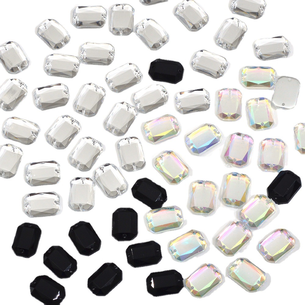 Taiwan Acrylic Rectangular Flat-Cut Mirror Double-Hole Hand-Stitched Rhinestone for Shoes and Evening Gowns with Octagonal Flat-Cut Hand-Stitched Rhinestones