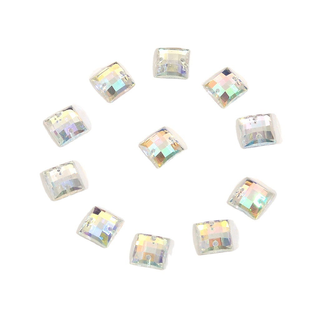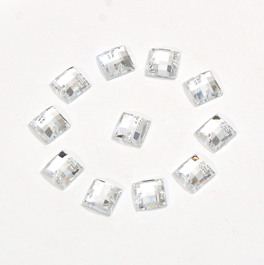 仿台湾亚克力平底正方龟面双孔手缝钻 婚纱毛衣闪钻装饰手缝配饰