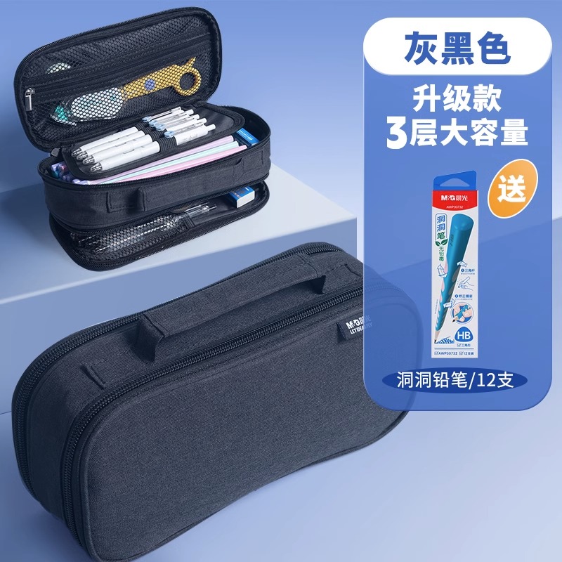 large capacity canvas pencil case stationery box for boys and girls primary school students pencil case 中文版