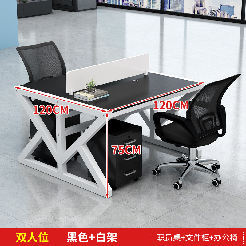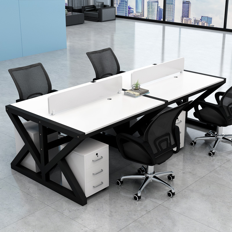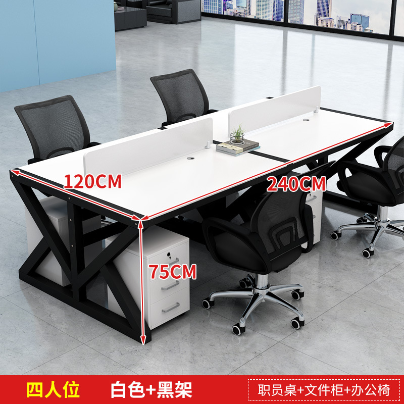 four-seat black desktop + white rack [without chair cabinet]]