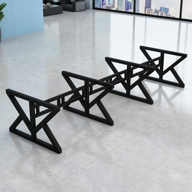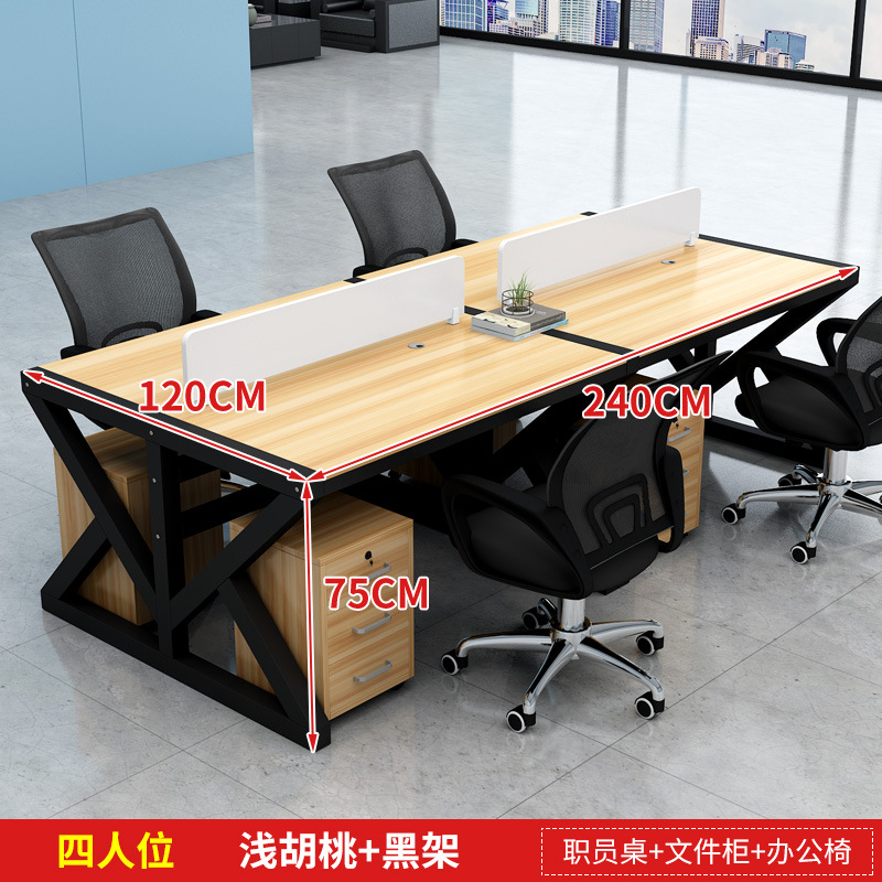 four-seat light walnut color desktop + black frame [without chair cabinet]]