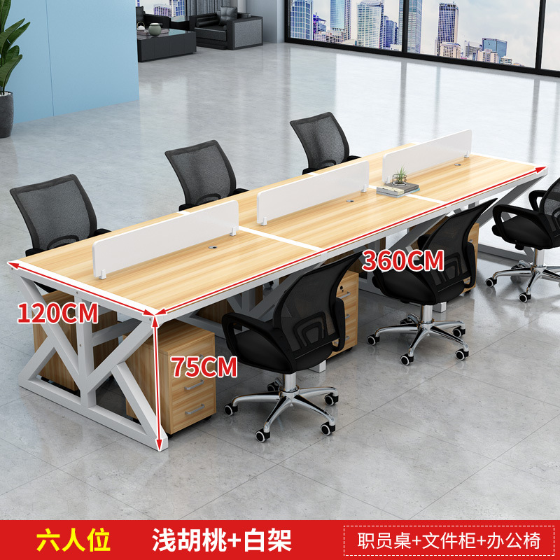 six-seat light walnut color desktop + white rack [without chair cabinet]]