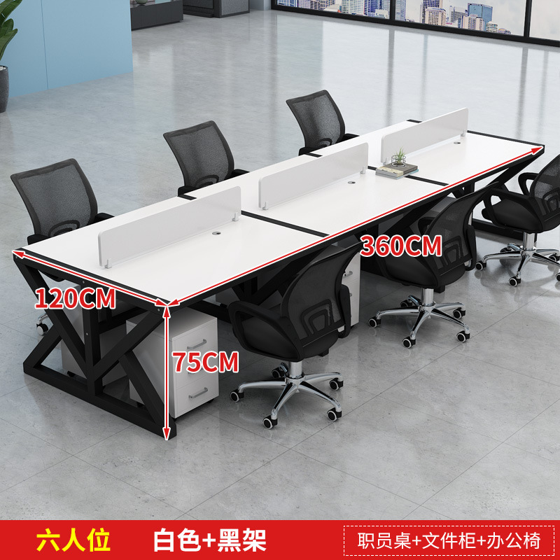 six-seat black desktop + white rack [without chair cabinet]]