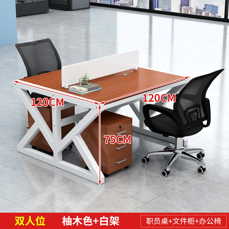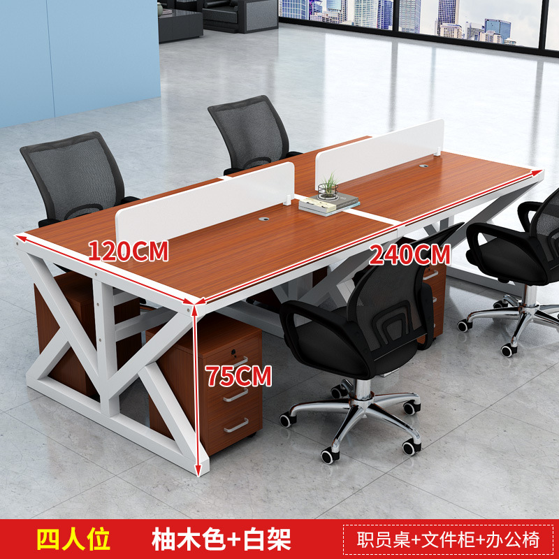 four-seat light walnut color desktop + white rack [without chair cabinet]]