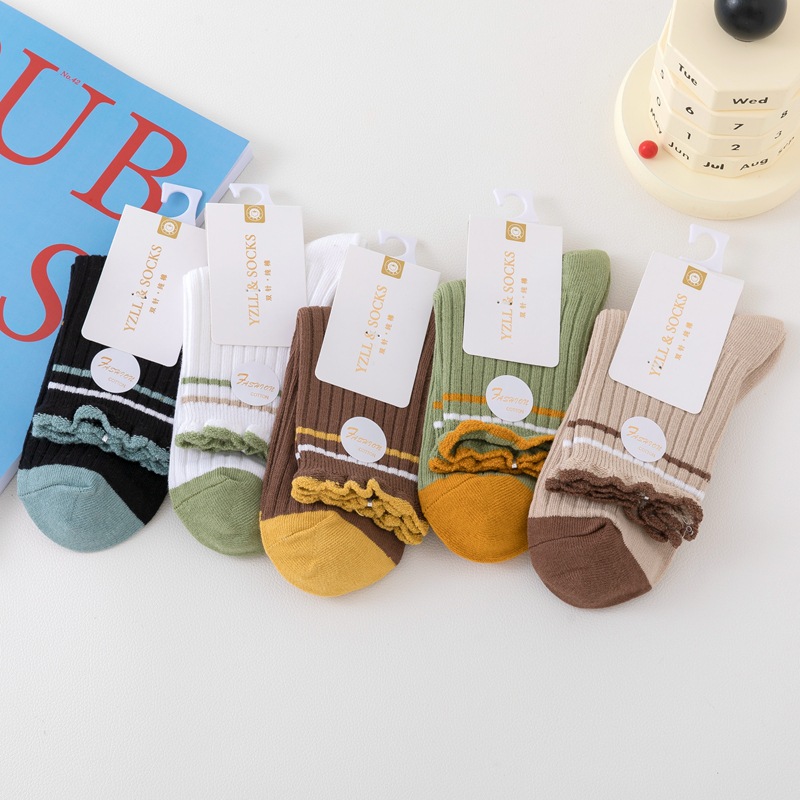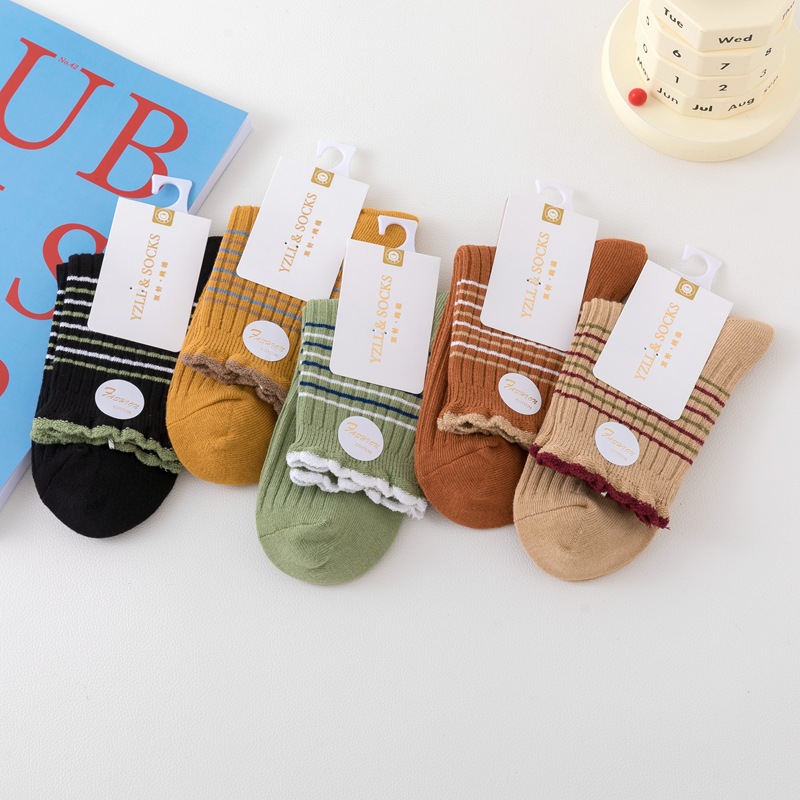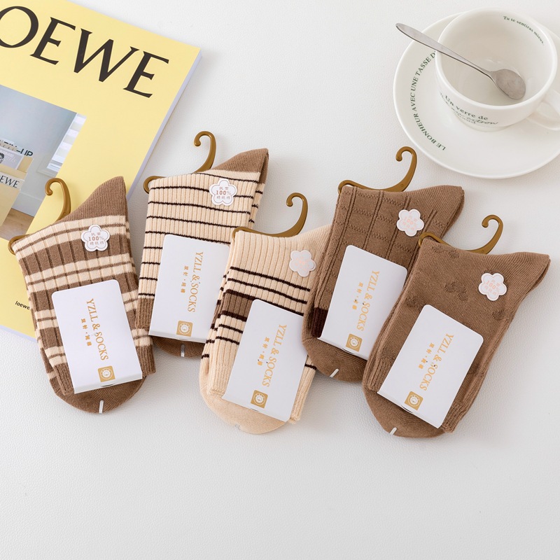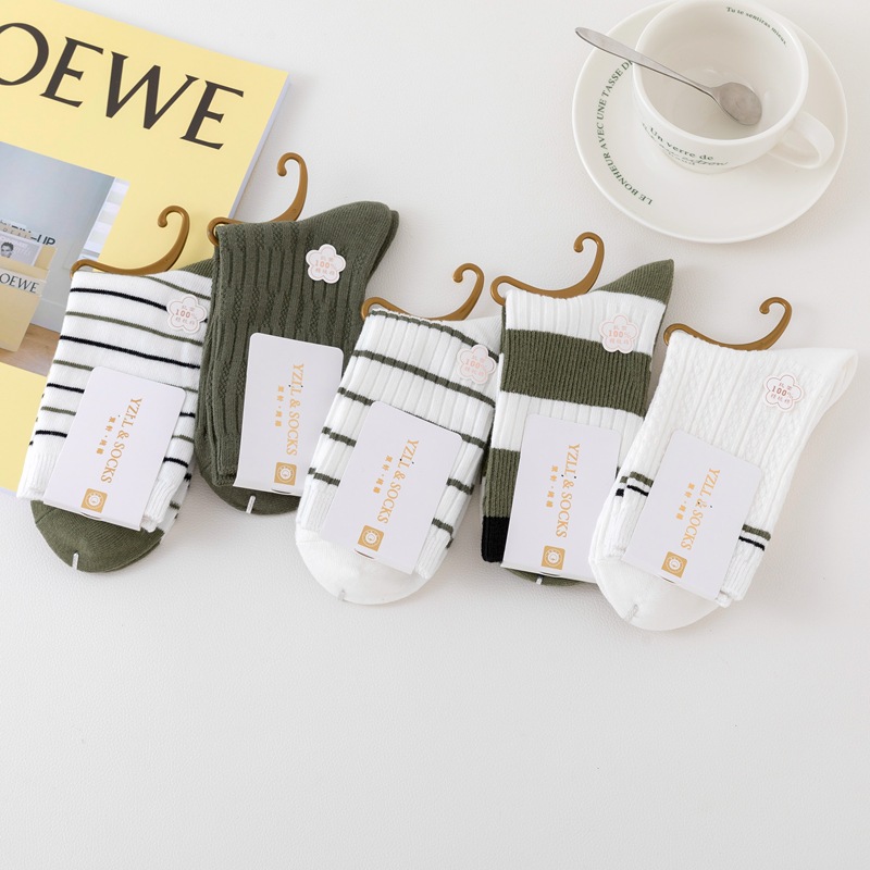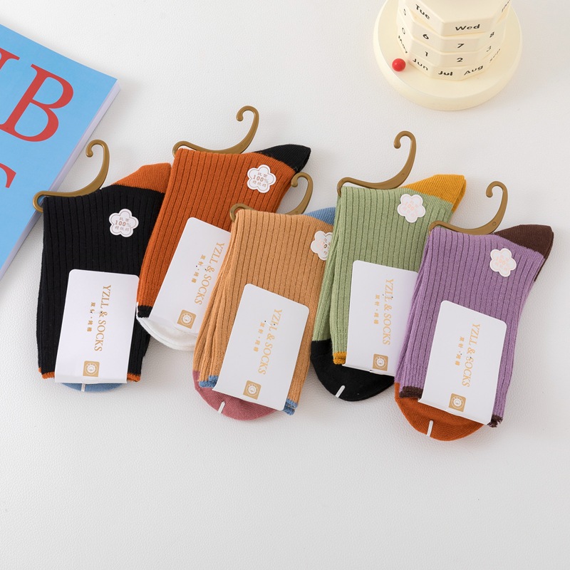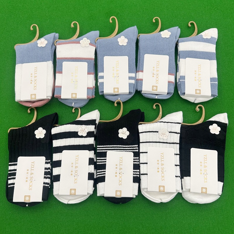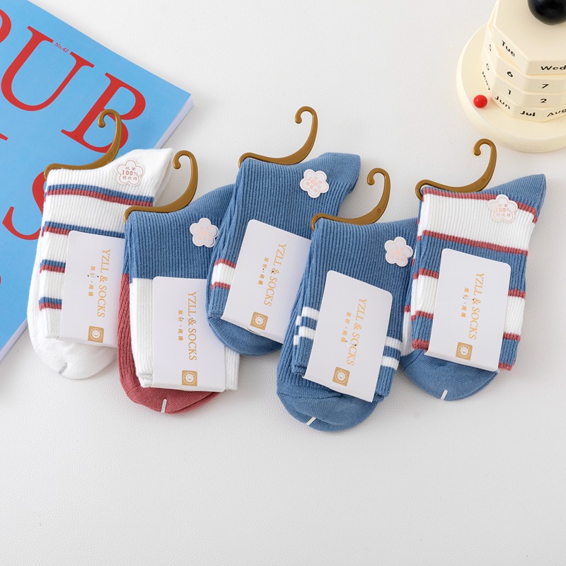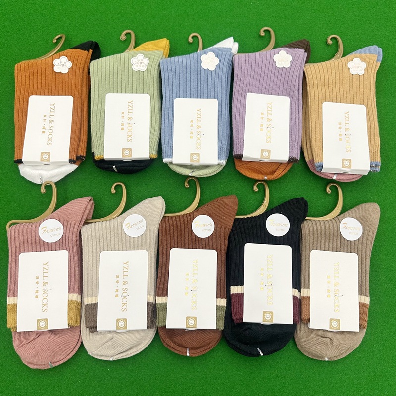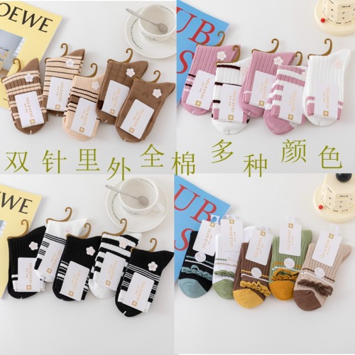 New style women's cotton socks with high quality and fashion, double needle thickened socks, wholesale