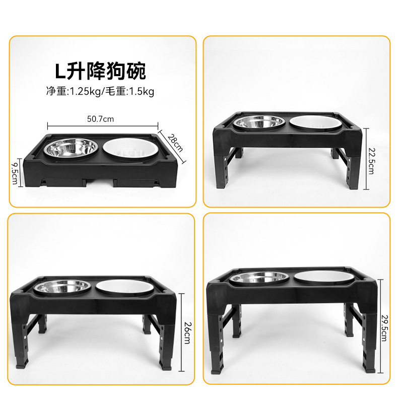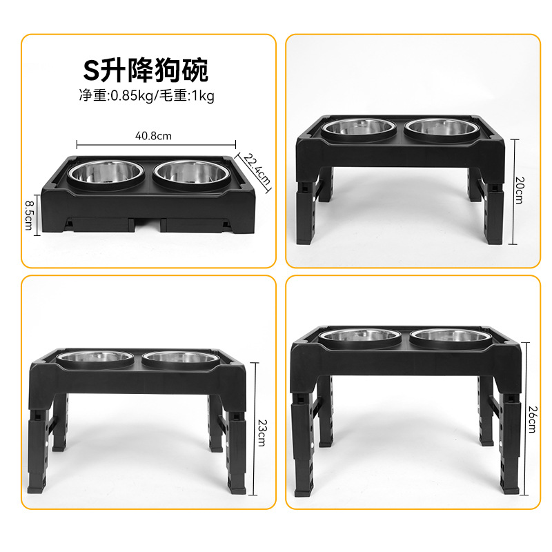 pet food bowl cross-border household standing dogs and cats convenient food tools double bowl foldable dog bowl rack