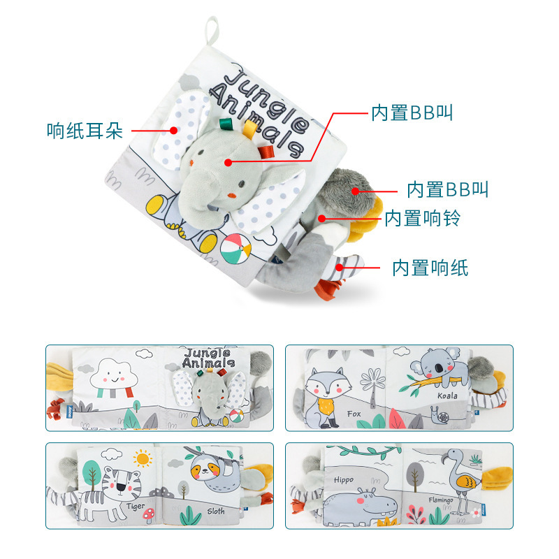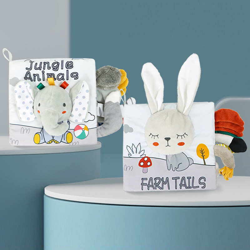 AIPINQI Baby Early Education Tear-Resistant Nordic Style Toy Black-White-Gray Tail Cloth Book