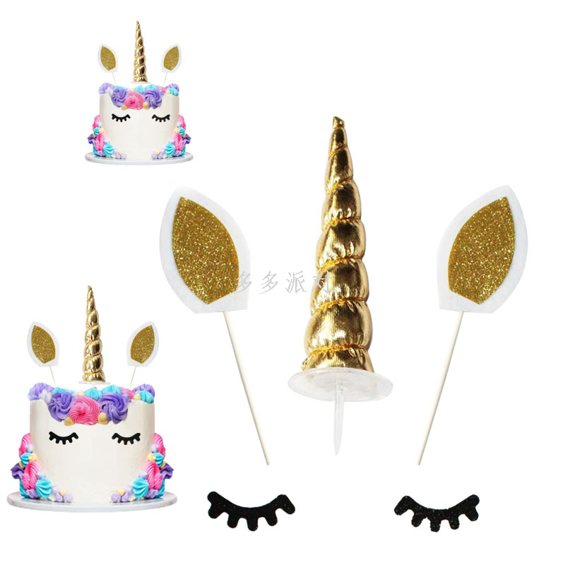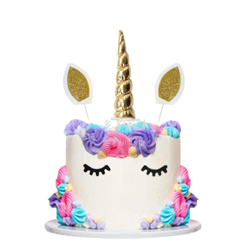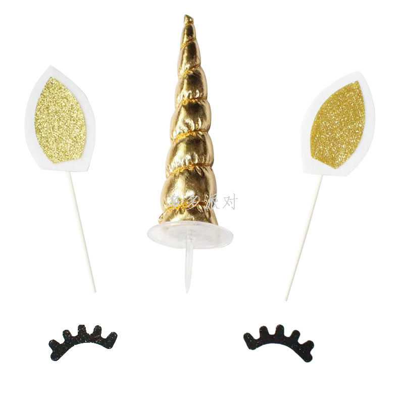 amazon new bronzing unicorn birthday party tableware suit holiday supplies disposable paper tray paper cups 中文版