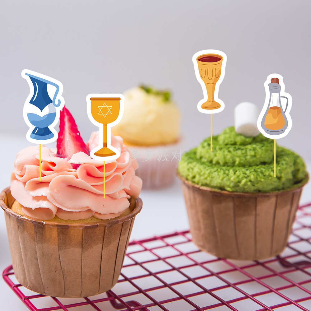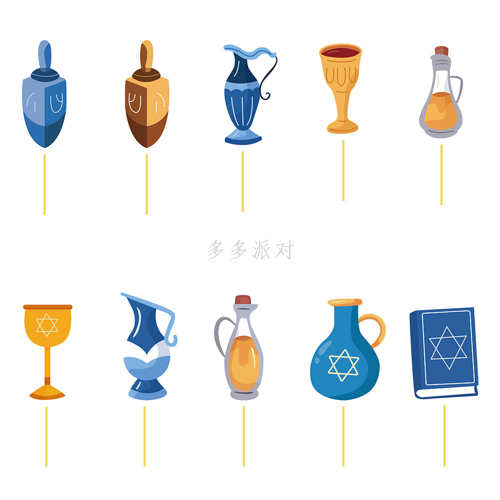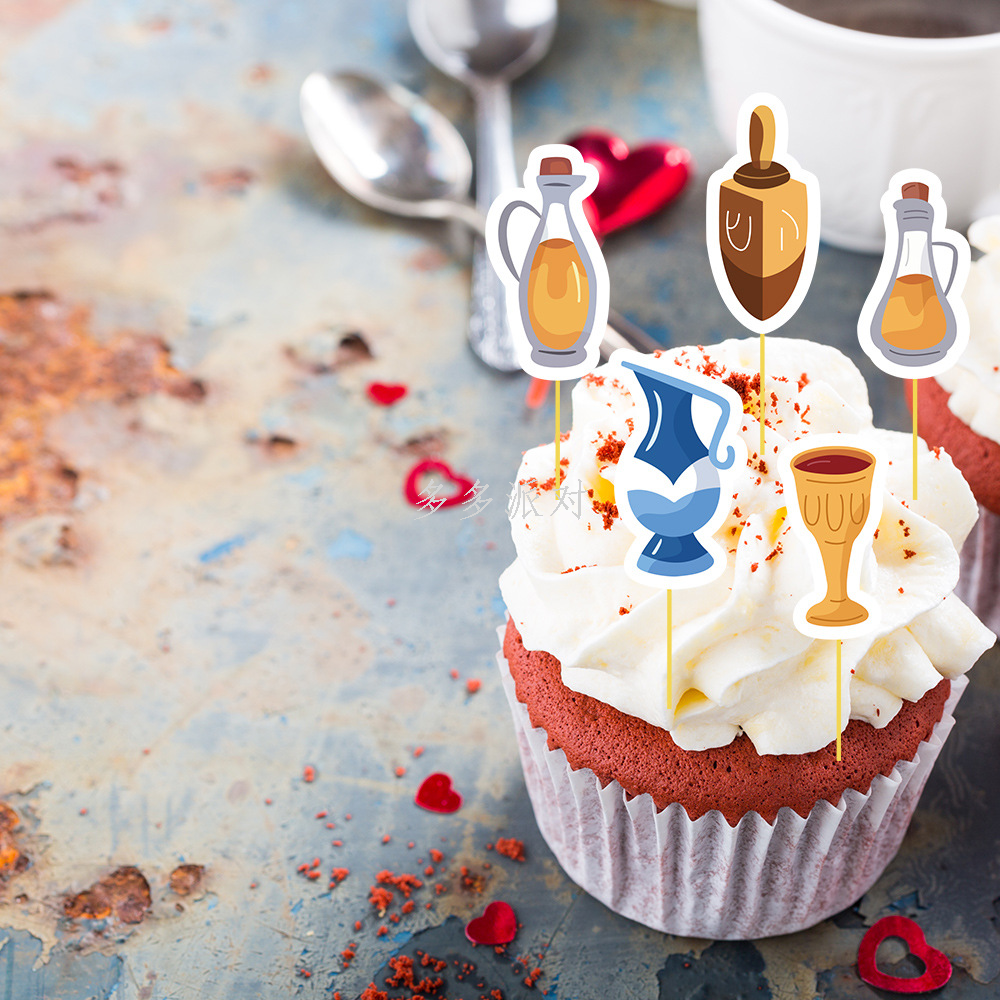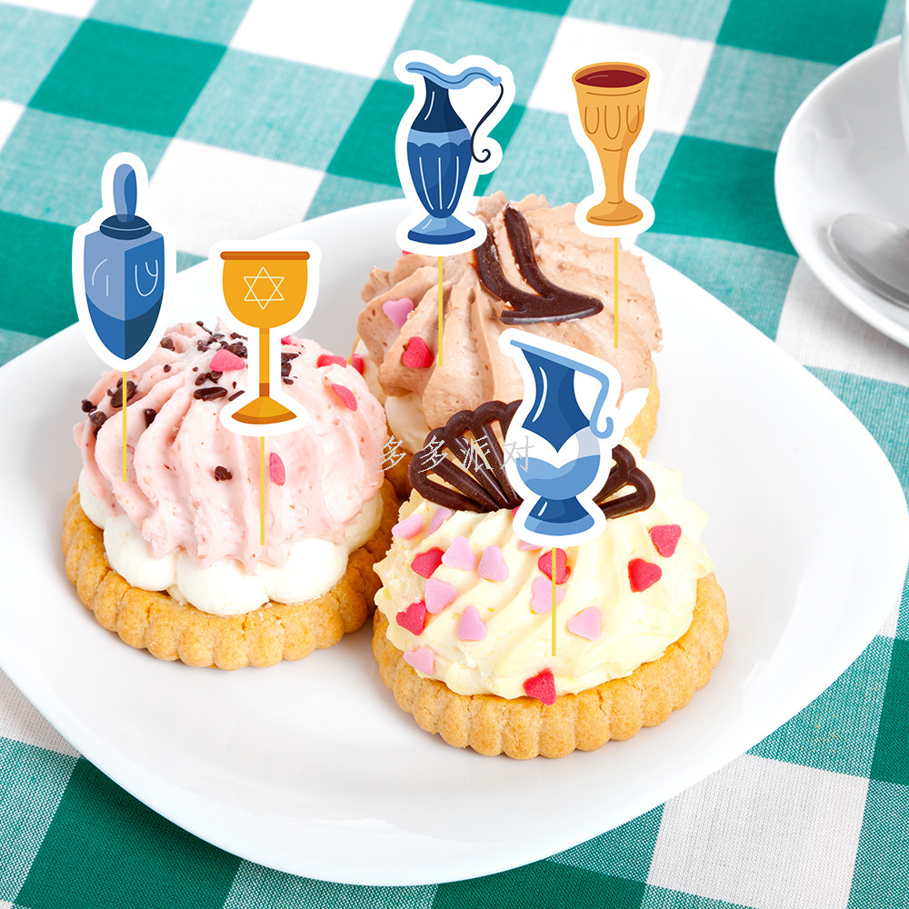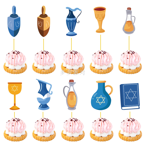 new hanukkah magic xingx candlestick kettle 10-piece set cake insert brand theme party decoration cake insert 中文版