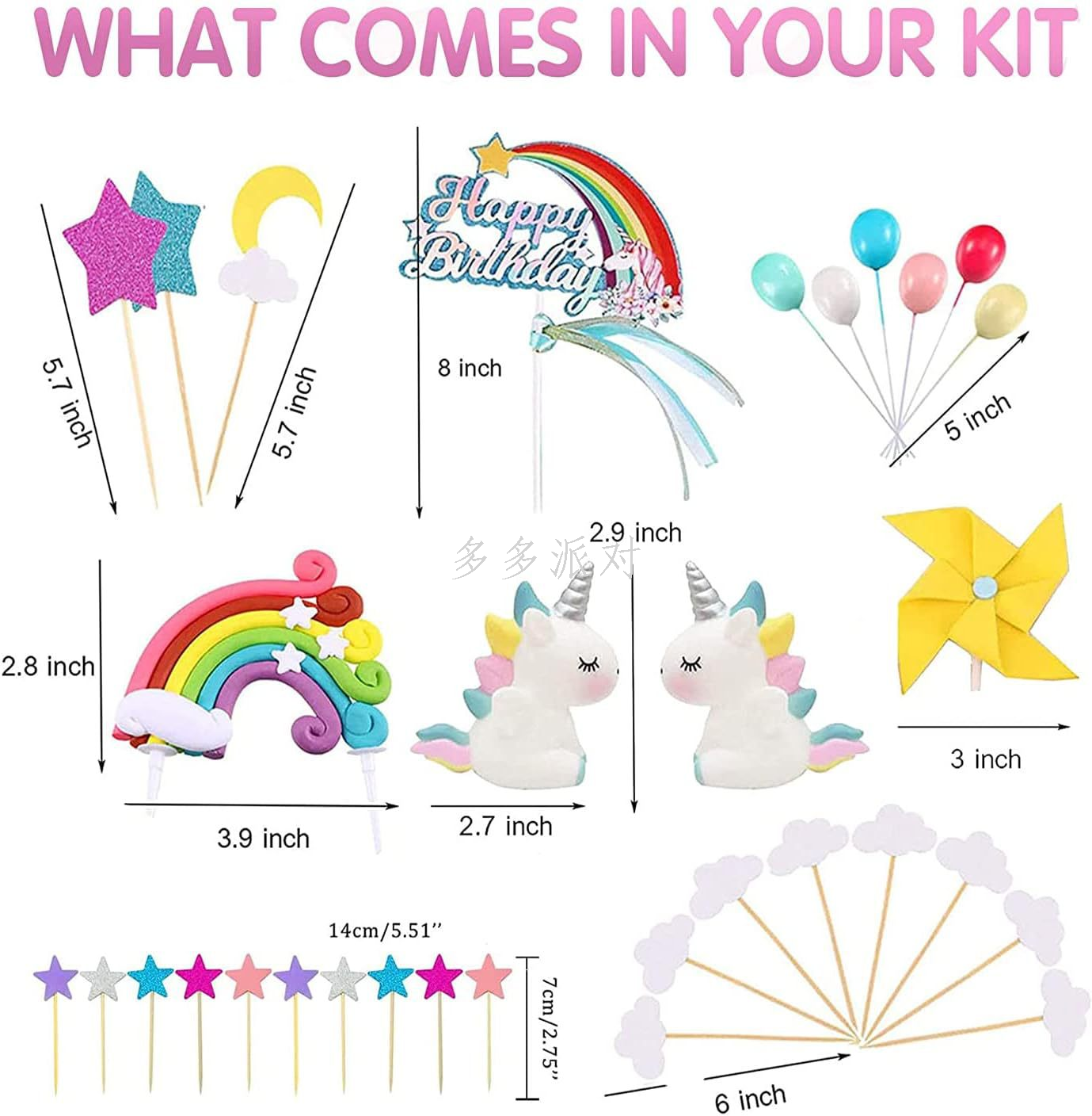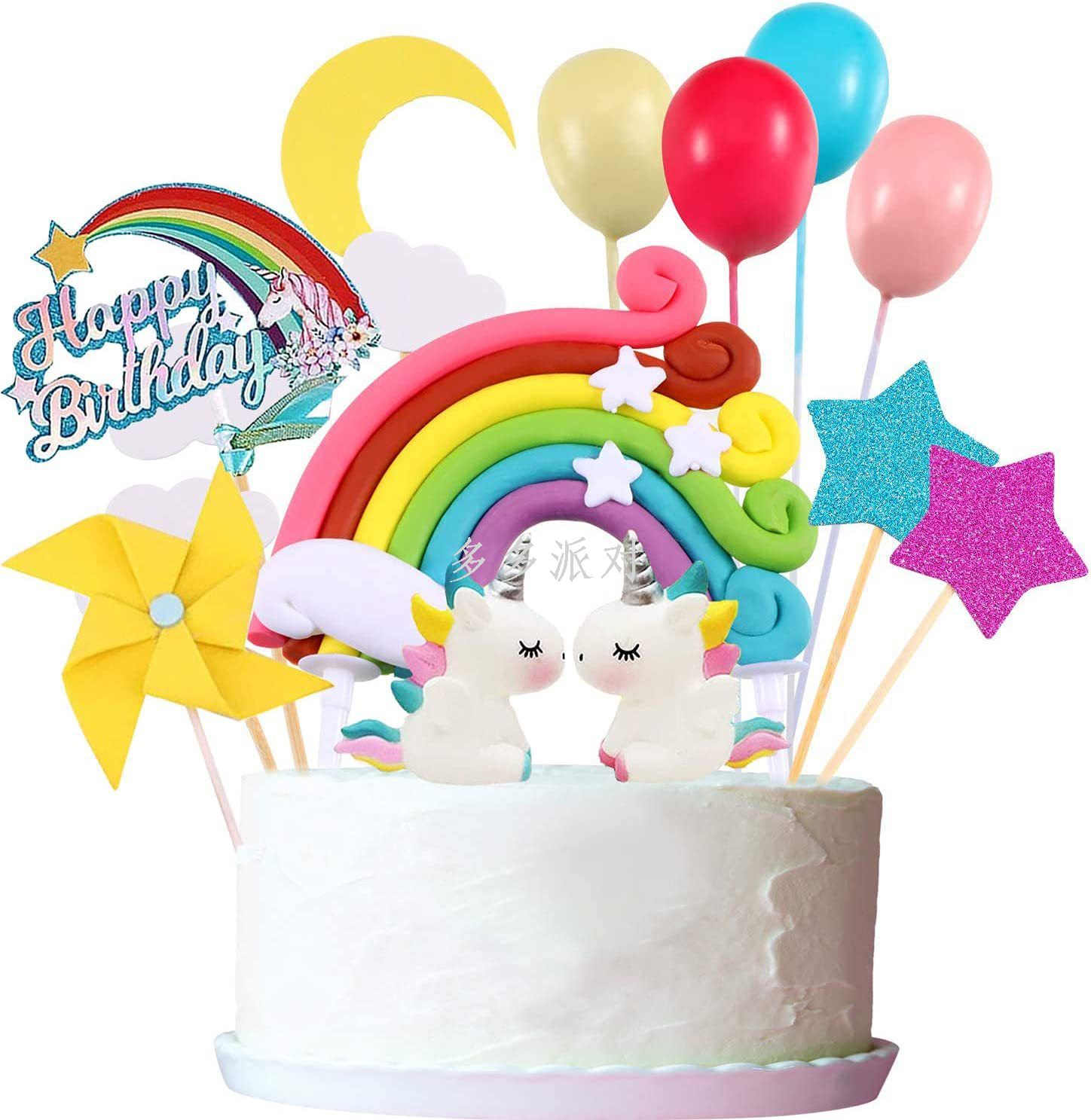 unicorn baking cake topper children's colorful cloud plug-in rainbow ball plug-in windmill colorful cake power strip 中文版