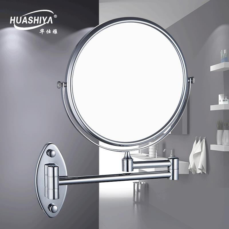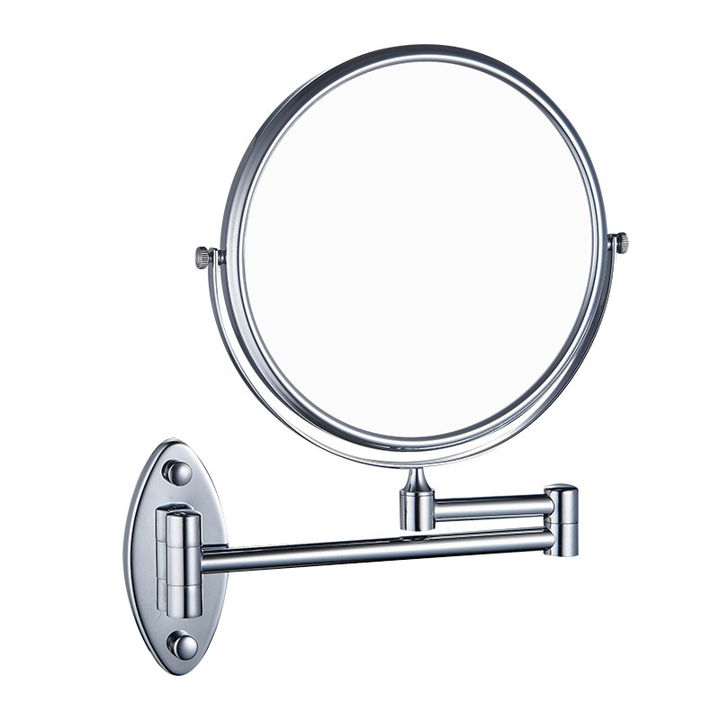 Round Bathroom Telescopic Cosmetic Mirror Single Side round Mirror Wall Hanging Hairdressing Mirror Metal Pu Princess Makeup Mirror