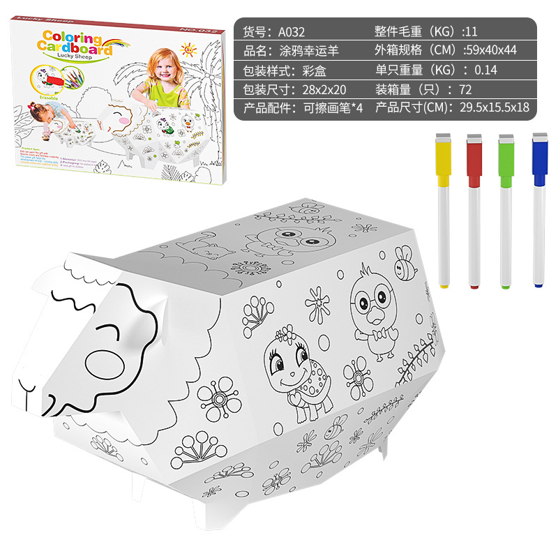 Cross-Border Hot Selling Paper Handmade DIY Mosaic Animal Model Erasable Graffiti New Doodle Painted Lucky Sheep 中文版