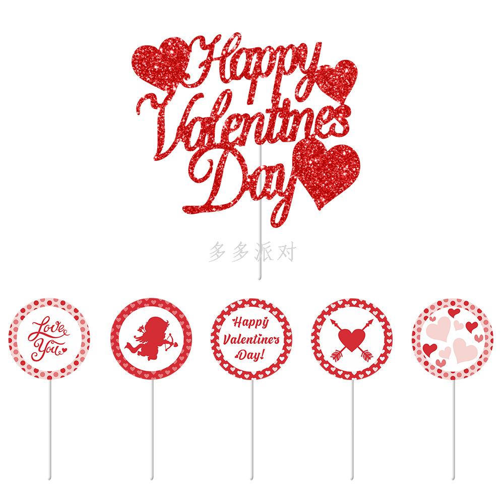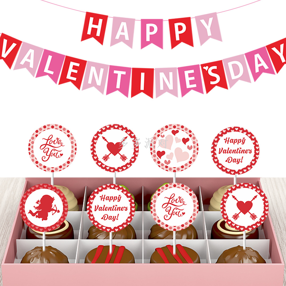 2024 valentine's day party decoration props valentine's day hanging flag cake decorative insertion proposal anniversary decoration 中文版