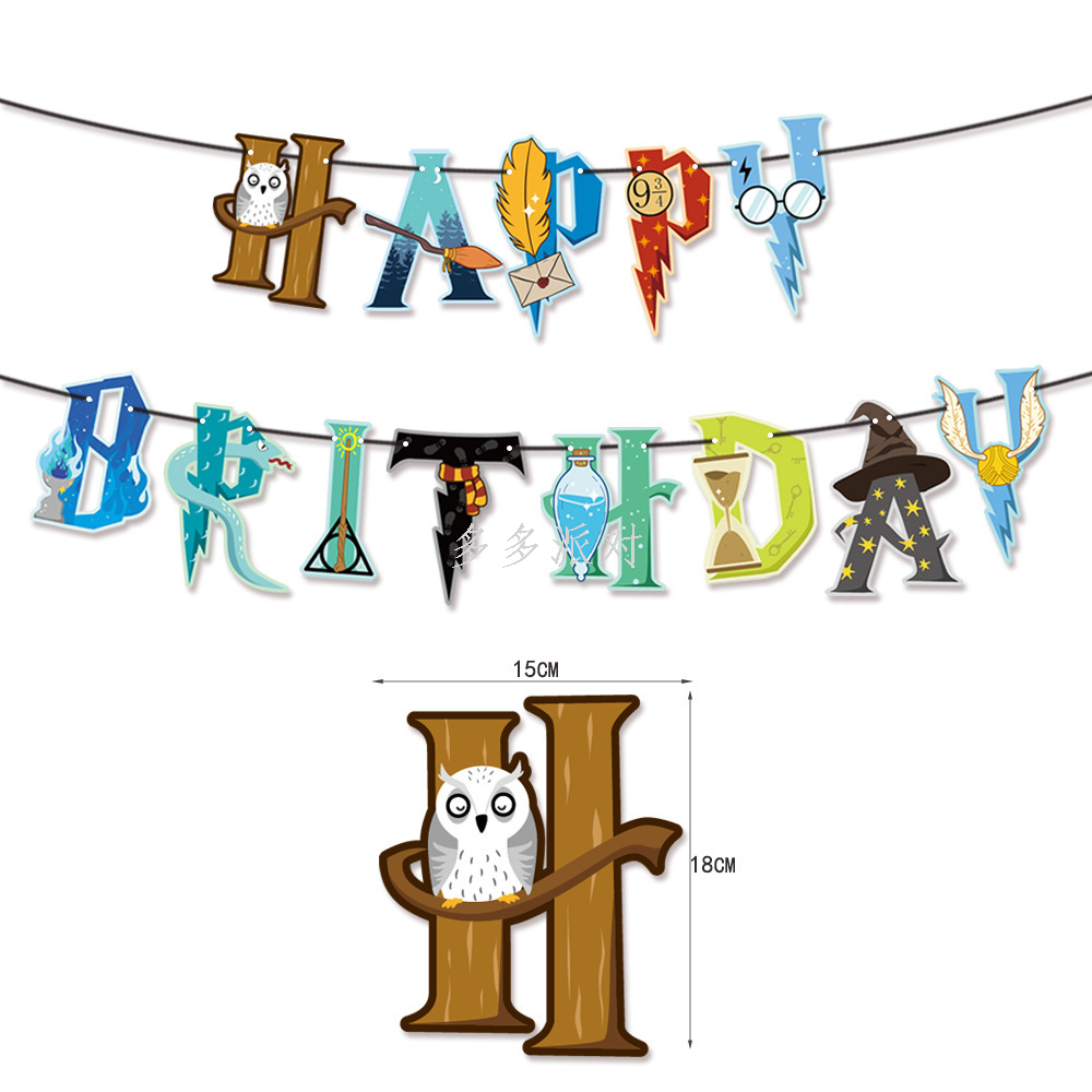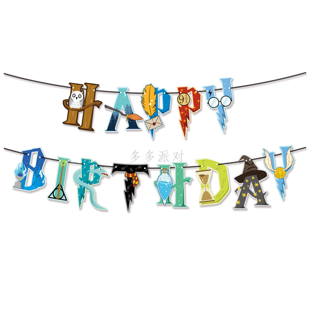amazon original harry potter birthday party hanging flag cake flag card factory direct sales 中文版