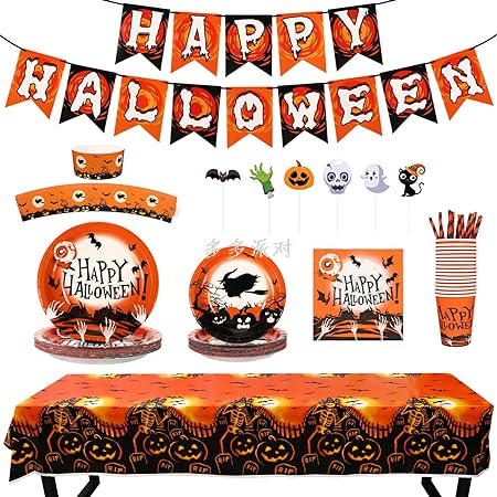 halloween tableware suit wansheng banner tablecloth paper pallet cup straw cake decoration party supplies home supplies 中文版