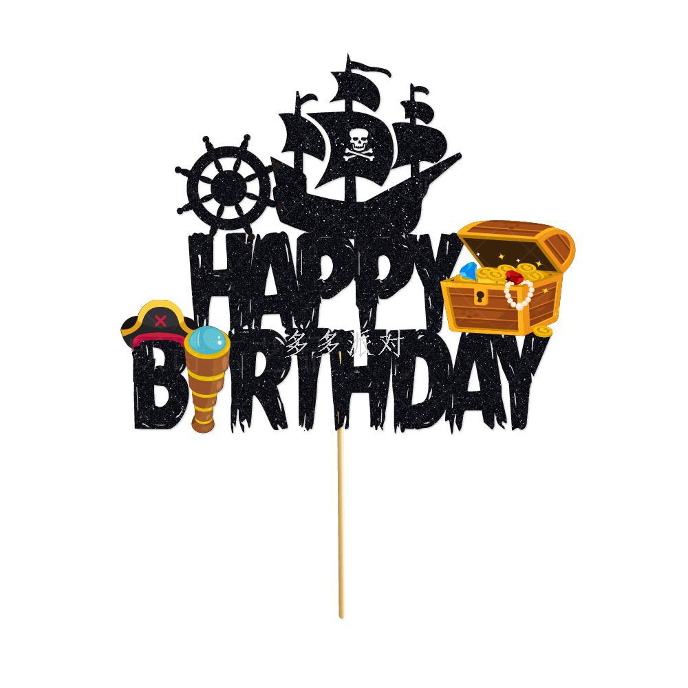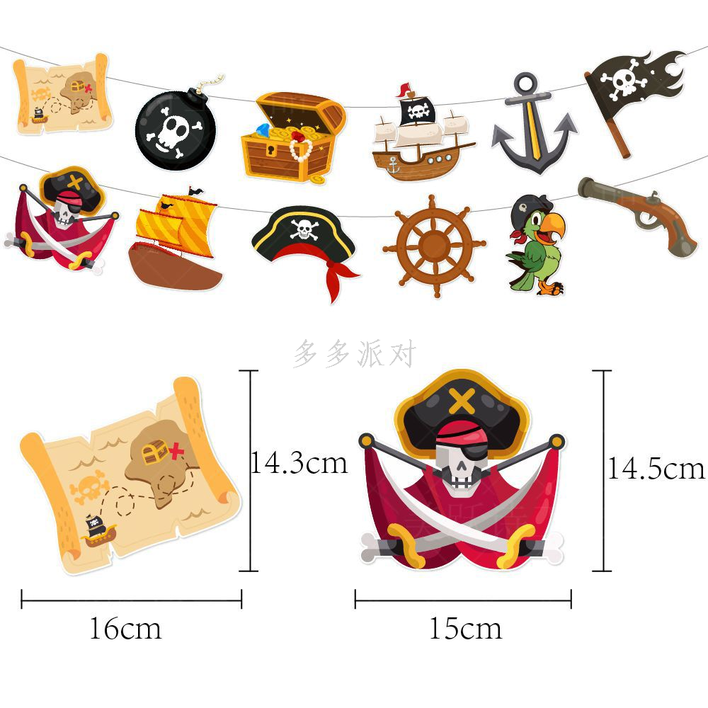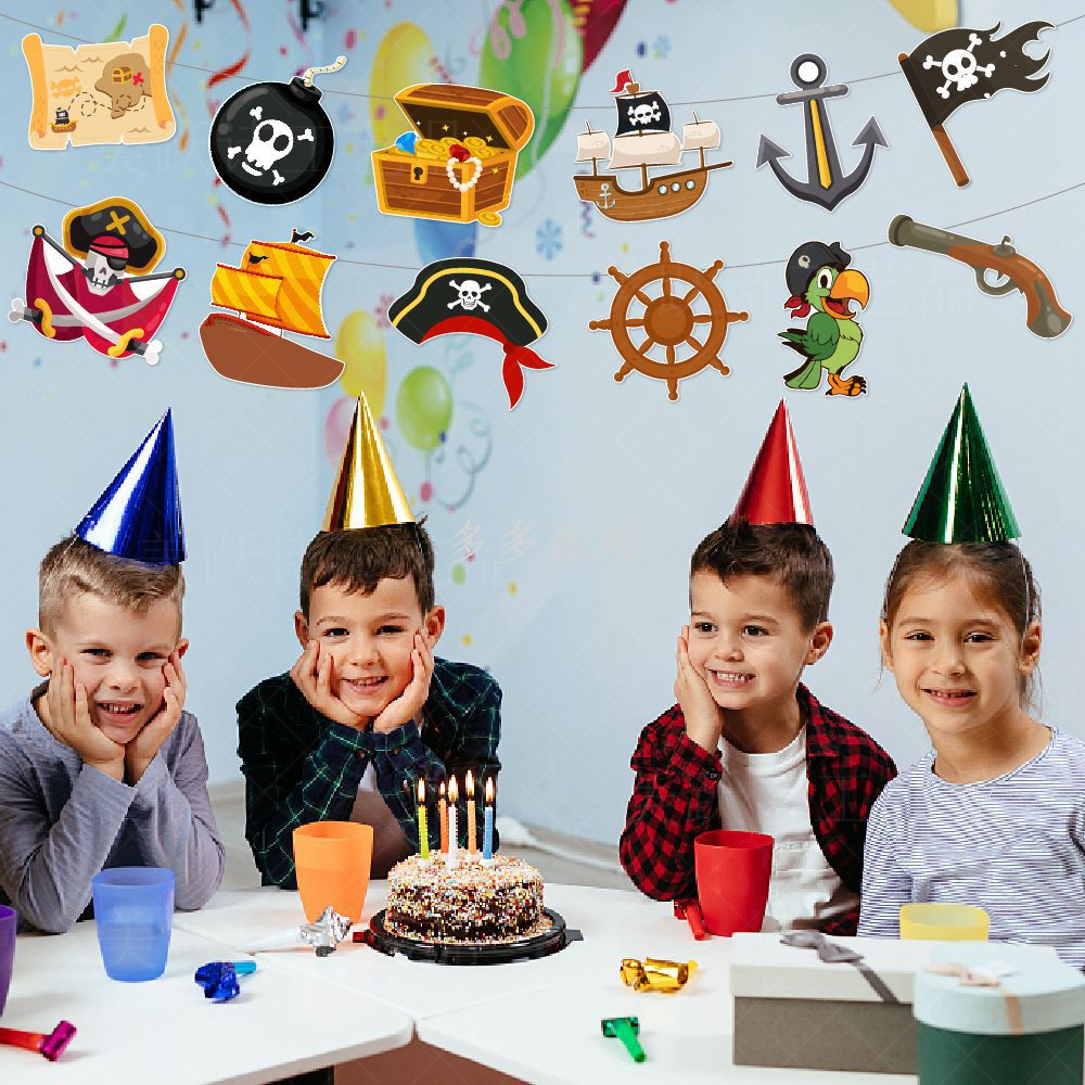 pirate theme birthday party decoration hanging flag birthday cake insertion boy birthday scene layout latte art 中文版