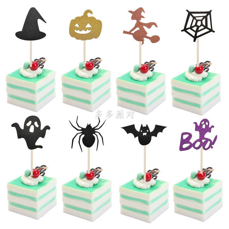 halloween cake inserting card 8-piece set halloween theme party cake flag decoration all saints day 中文版