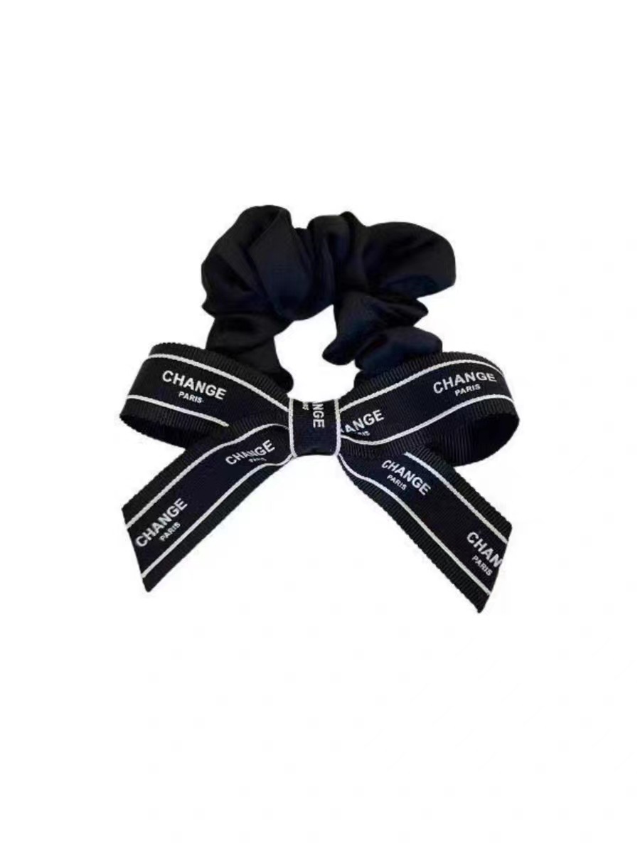 [black] bow letter hair ring