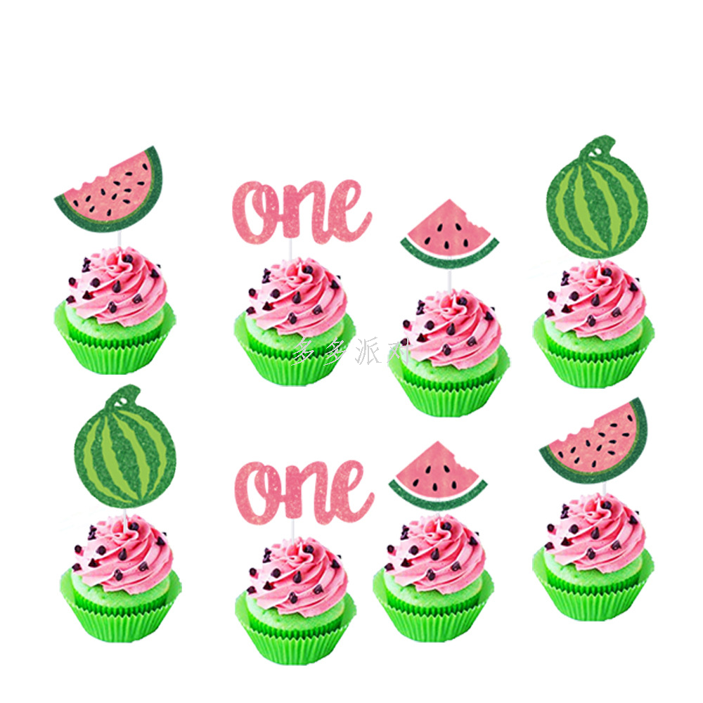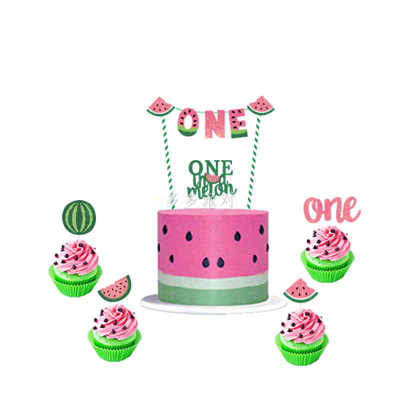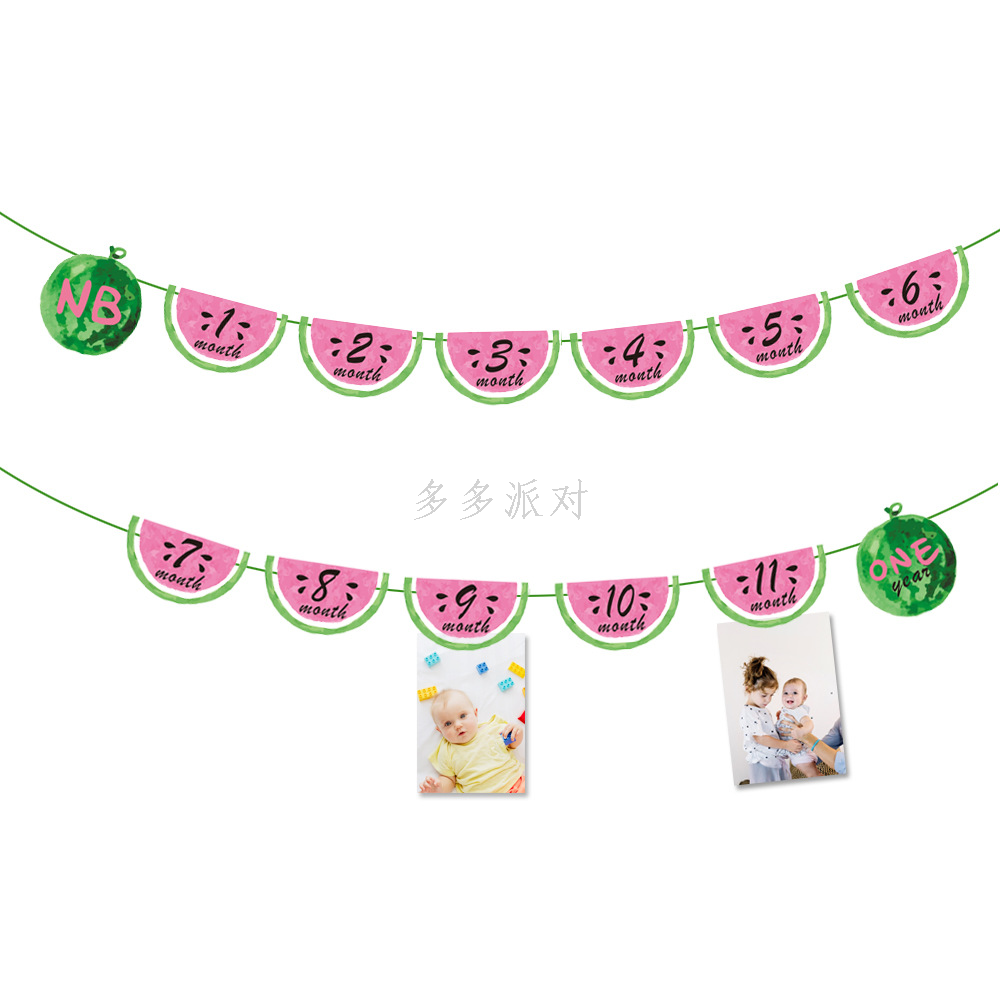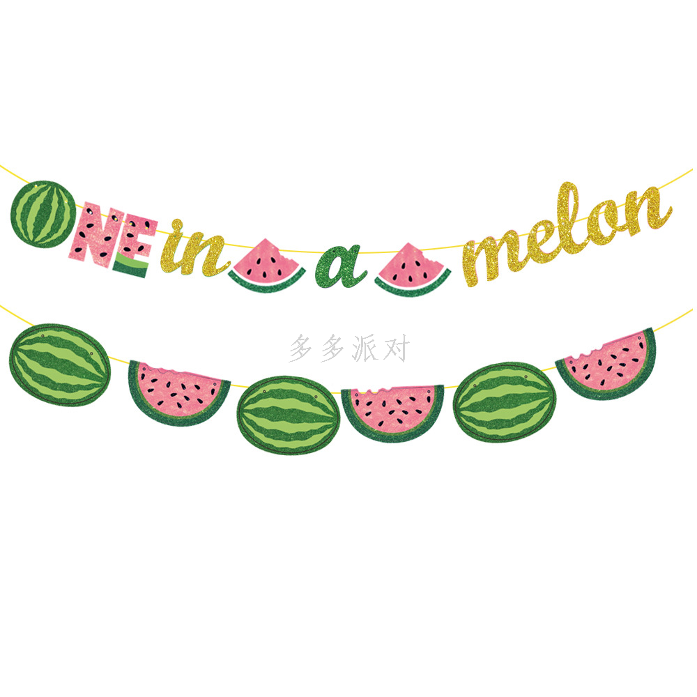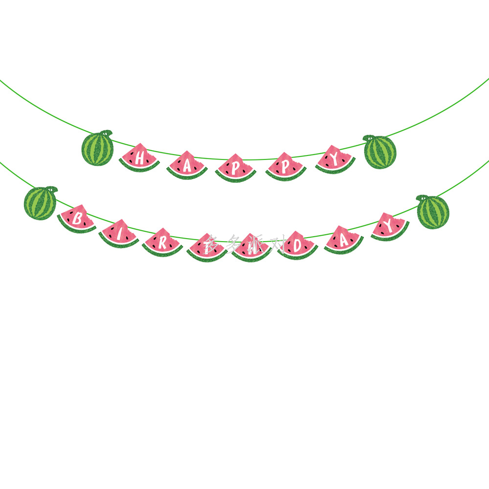 summer fruit watermelon birthday theme party decoration hanging flag watermelon cake insert december photo film hanger 中文版