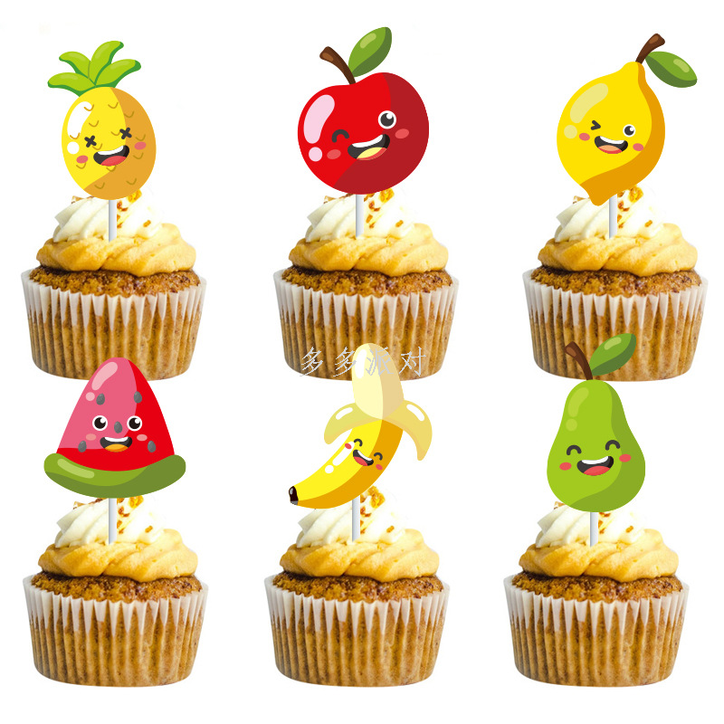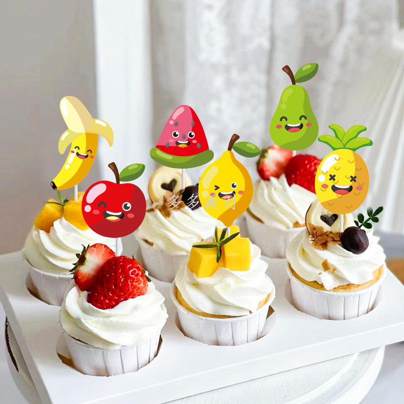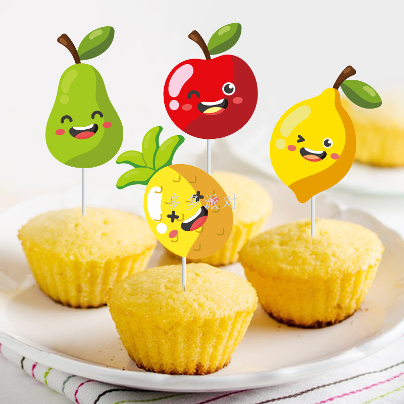 fruit theme watermelon lemon decorative baking birthday paper cup cake inserting card dessert table decorative accessories plug-in 中文版