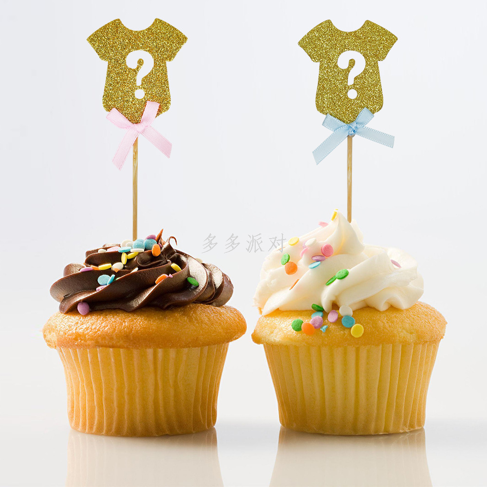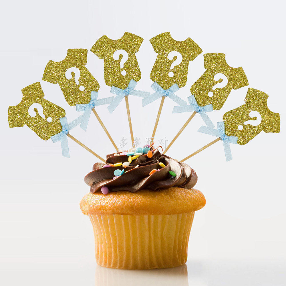 baby gender reveal party theme baby clothes question mark 12 pieces cake inserting card decorative cake decorative flag cake flag 中文版