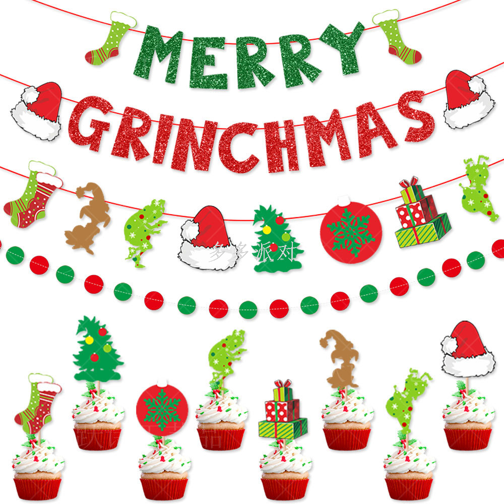 new christmas party decoration hanging flag latte art cake inserting card charms hangings christmas layout props 中文版