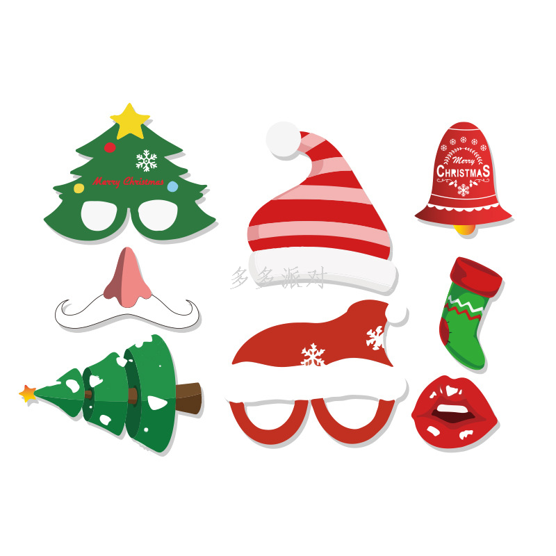 cross-border supply christmas photo props 15-piece set christmas hat new year funny paper beard mask glasses new 中文版