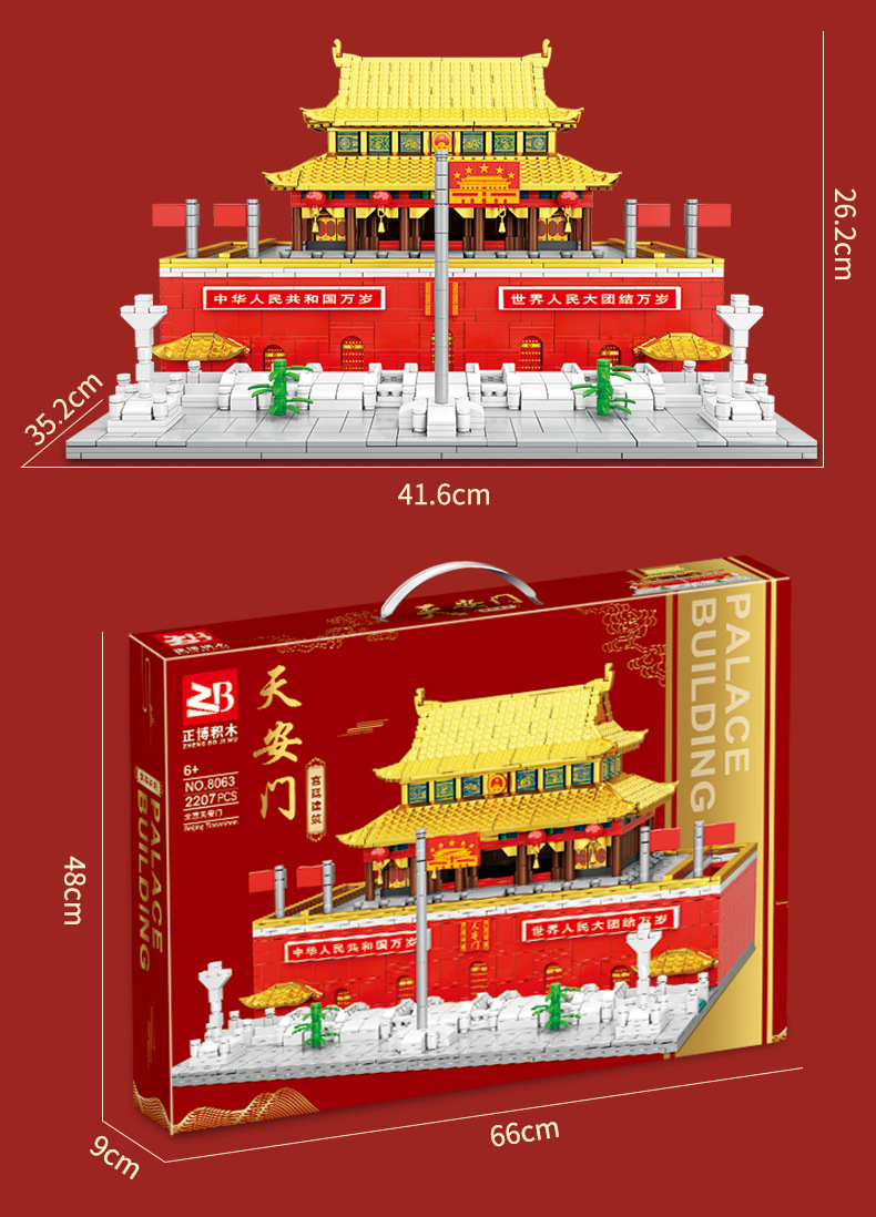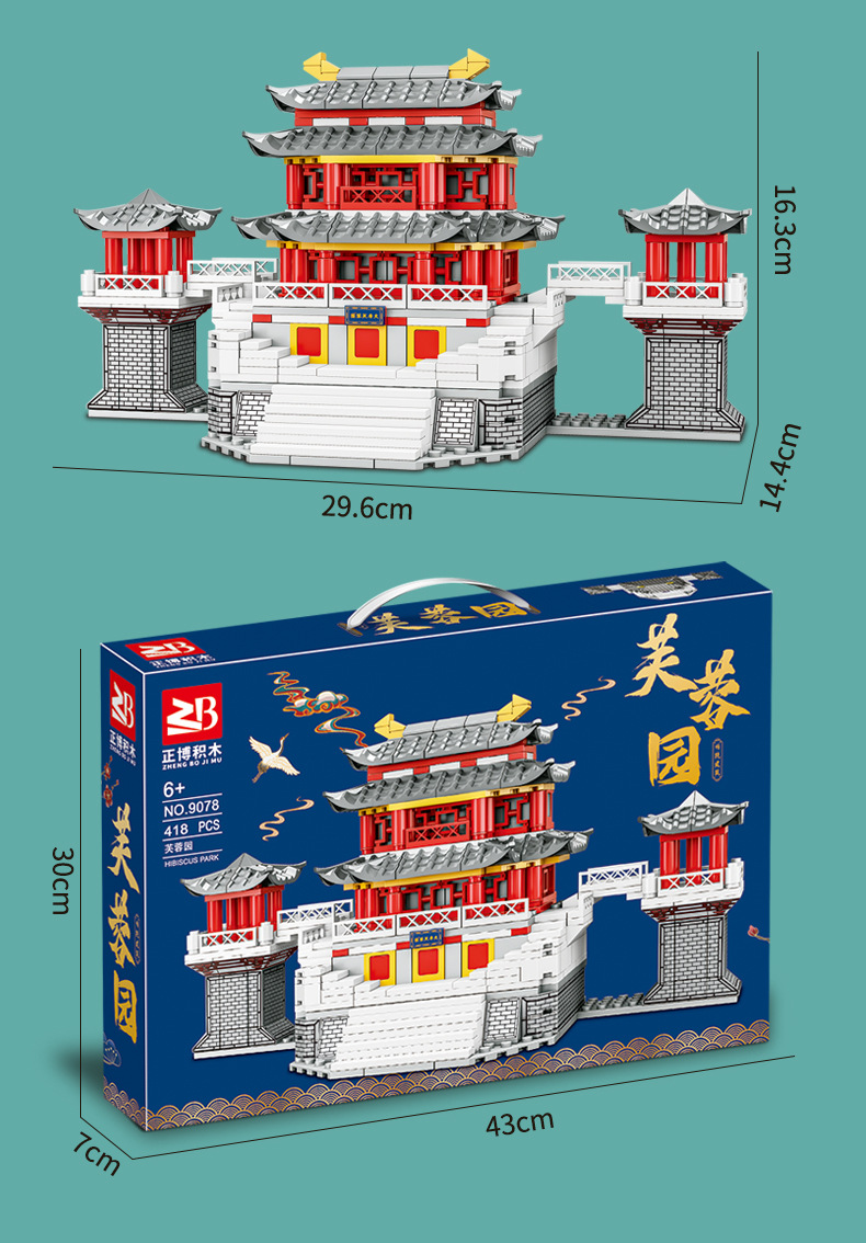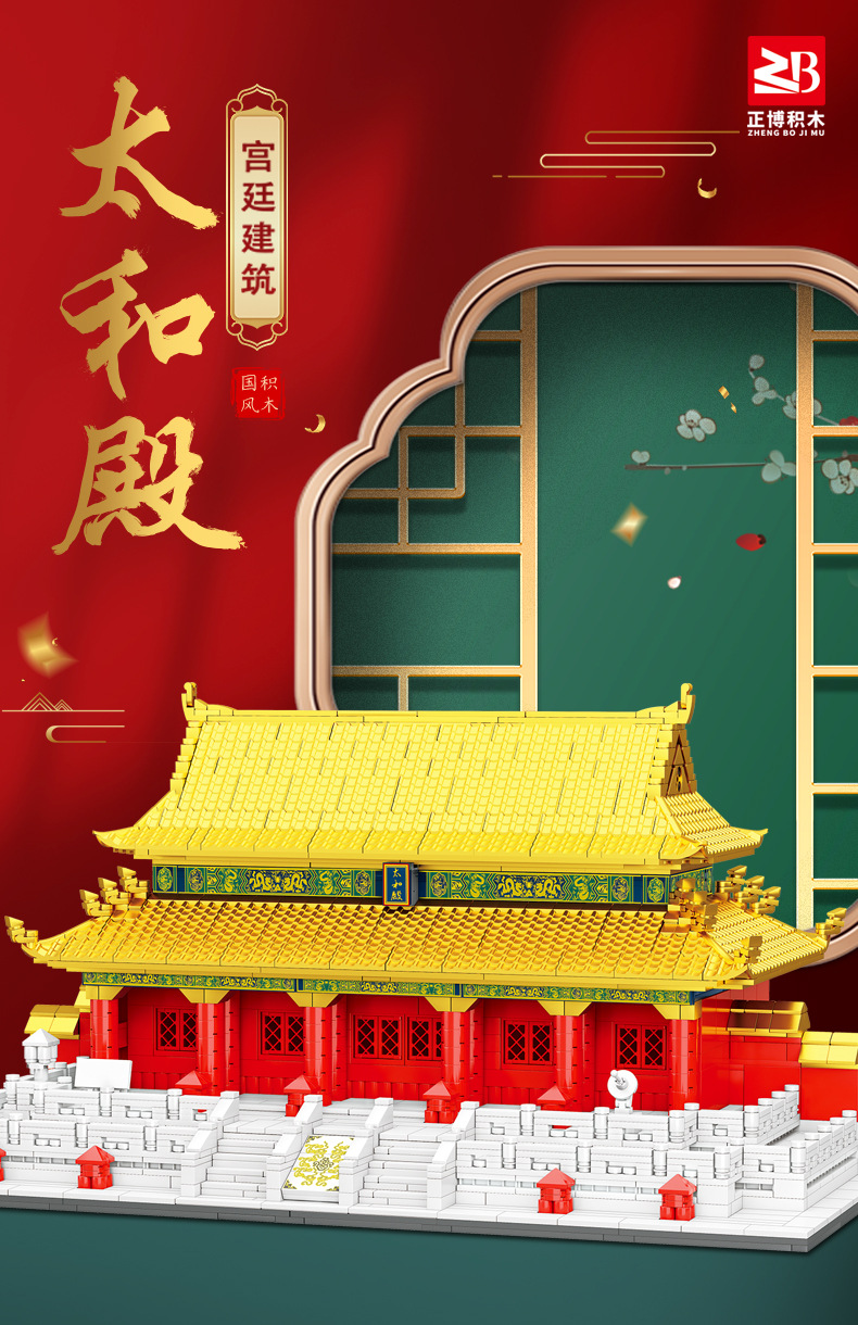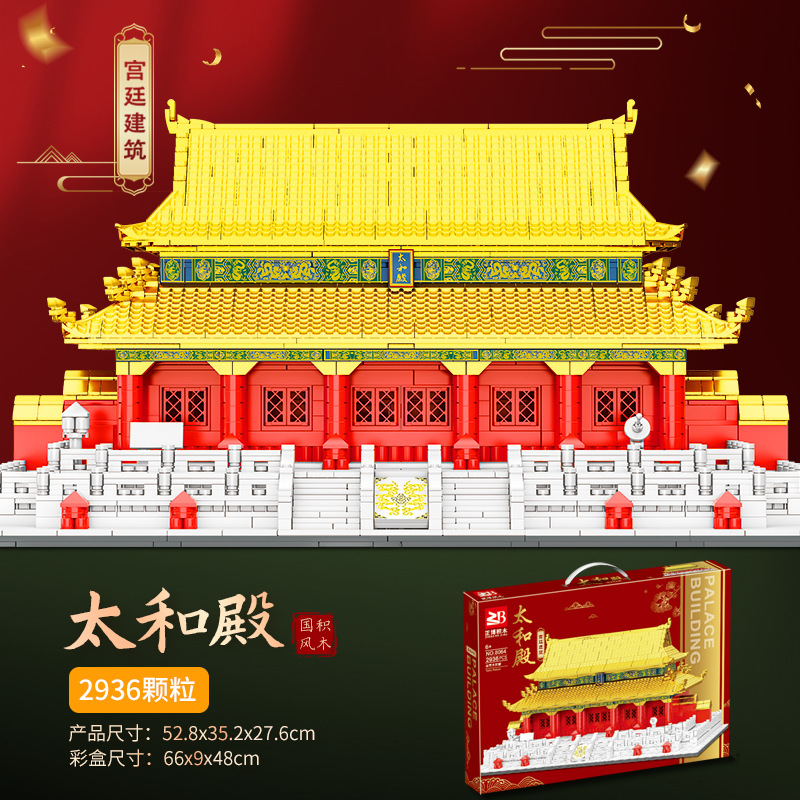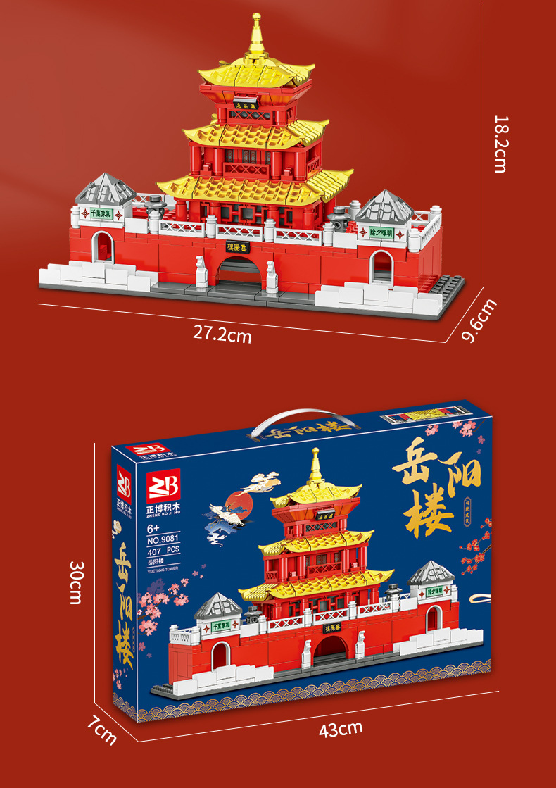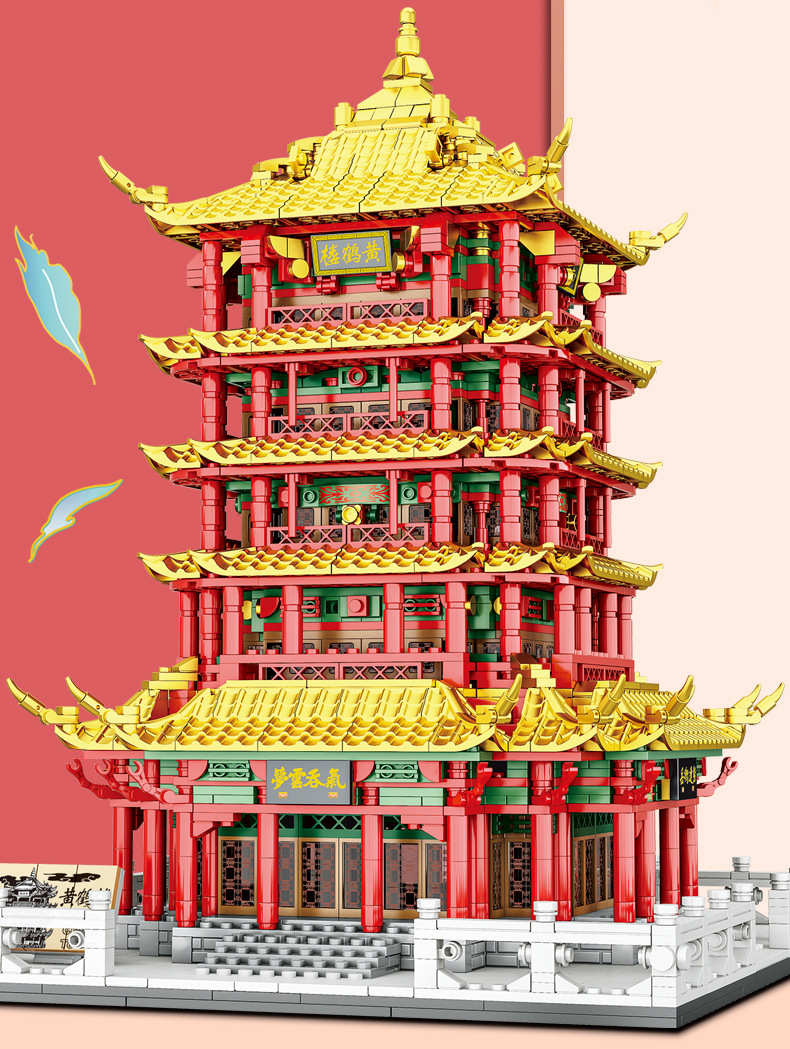Zhengbo Jiayuguan Building Blocks Puzzle Assembled Yellow Crane Tower Tian'anmen Taihe Hall Great Wall Ancient Building Model Toy 中文版