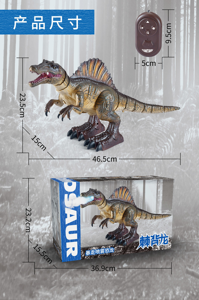 Product features: Forward, one-button spray/light, one-button demonstration, 6 types of dinosaur sound effects.