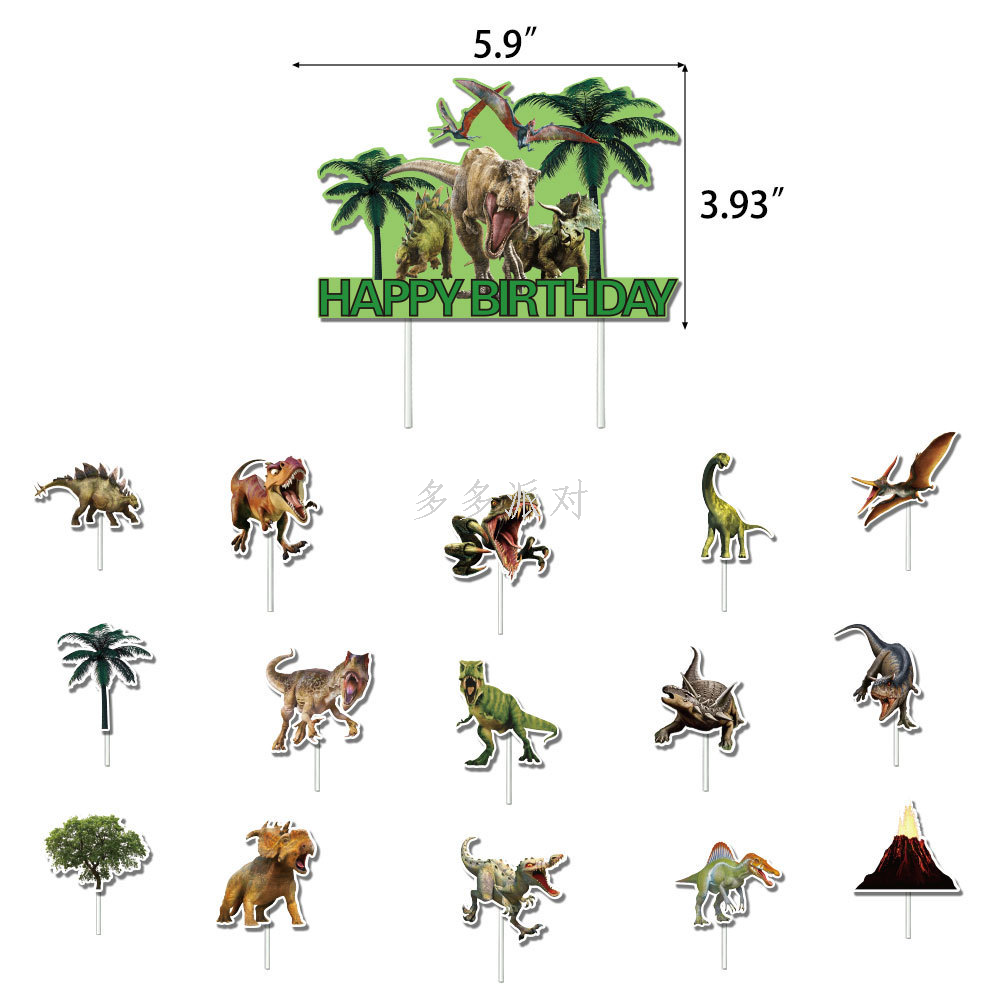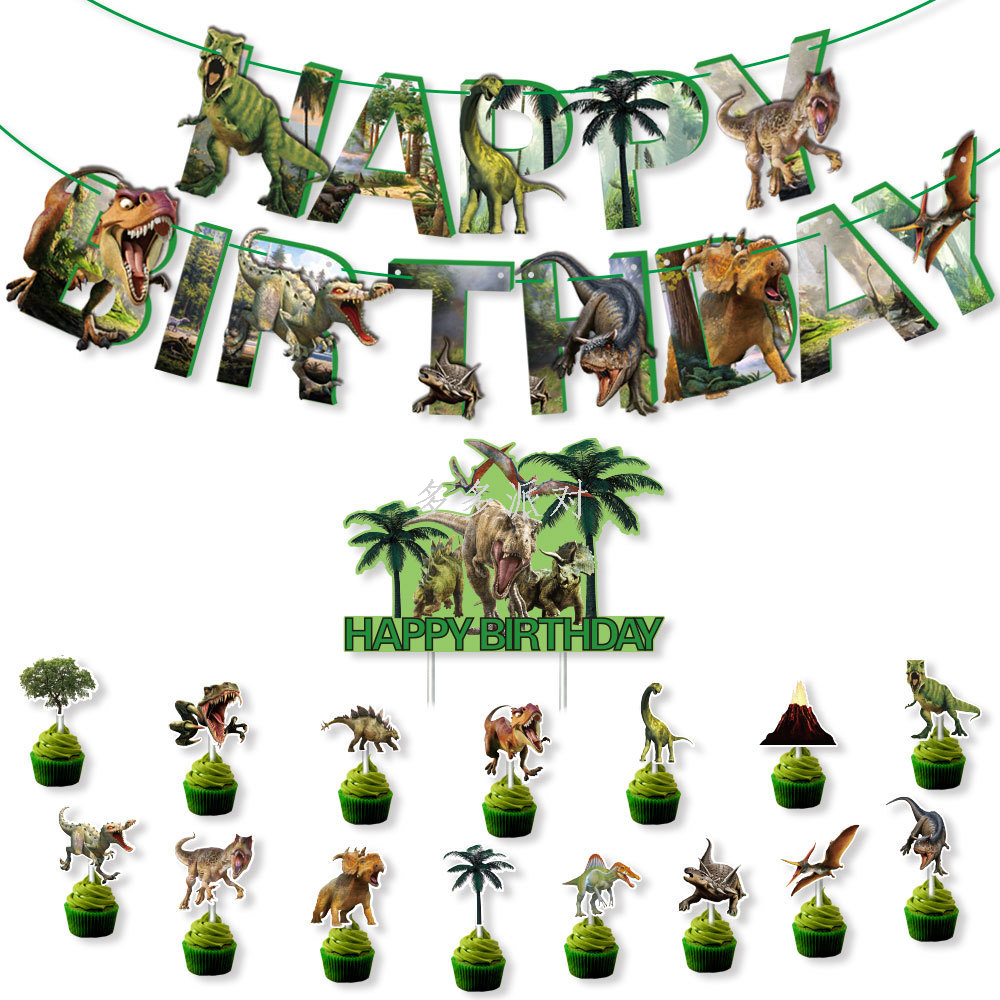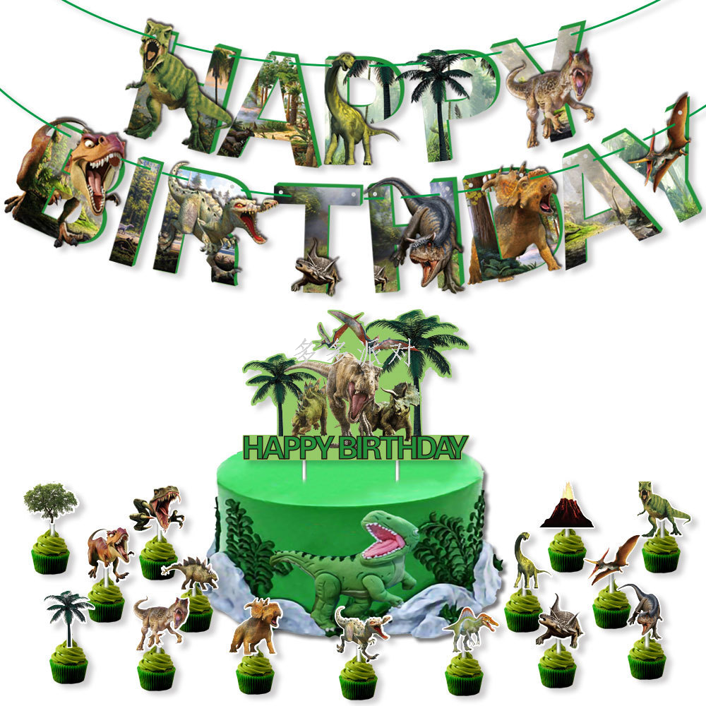 new dinosaur theme birthday party hanging flag cake inserting card suit children birthday banners decoration supplies 中文版