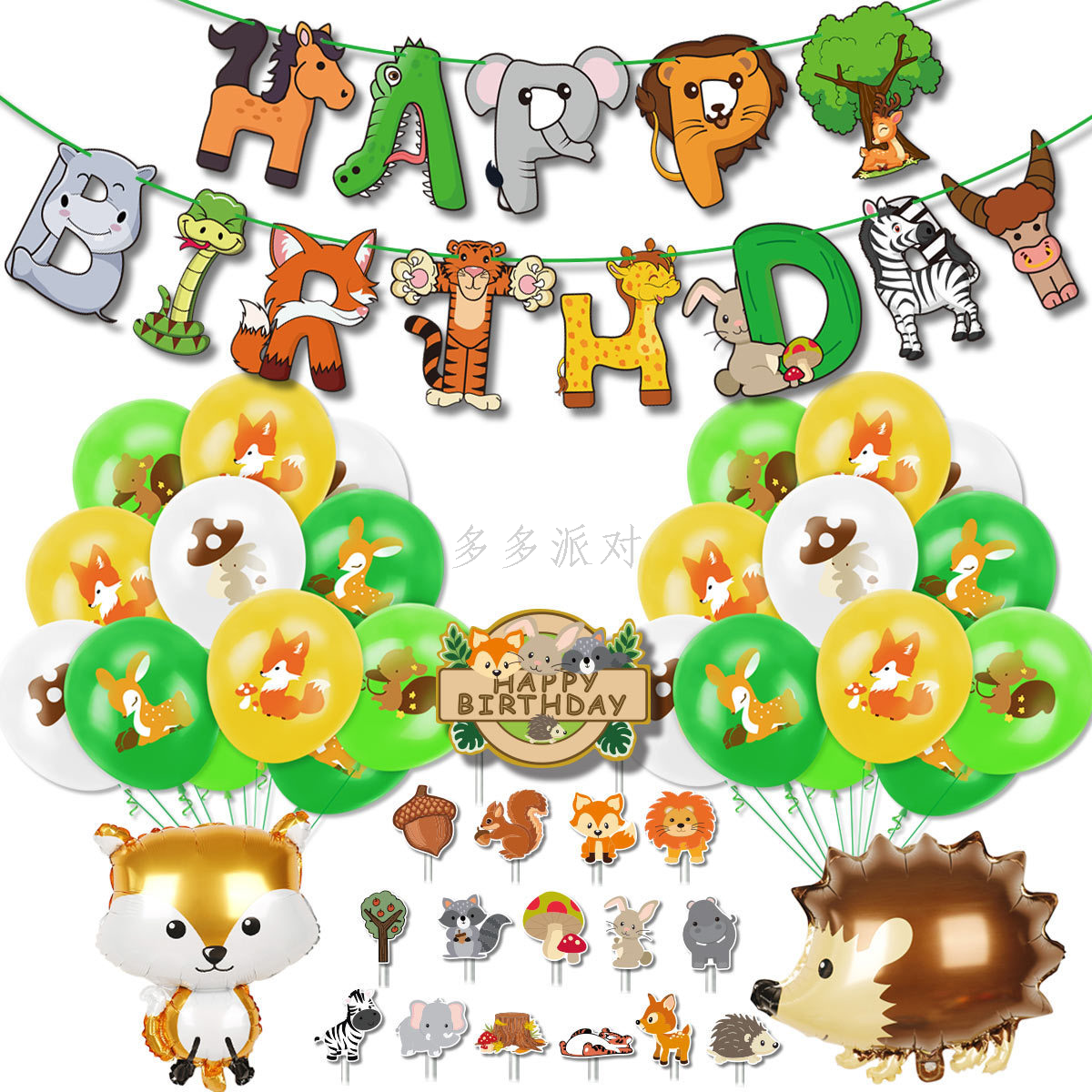 forest theme party decoration animal letters hanging flag cake inserting card suit birthday banners decorative flag 中文版