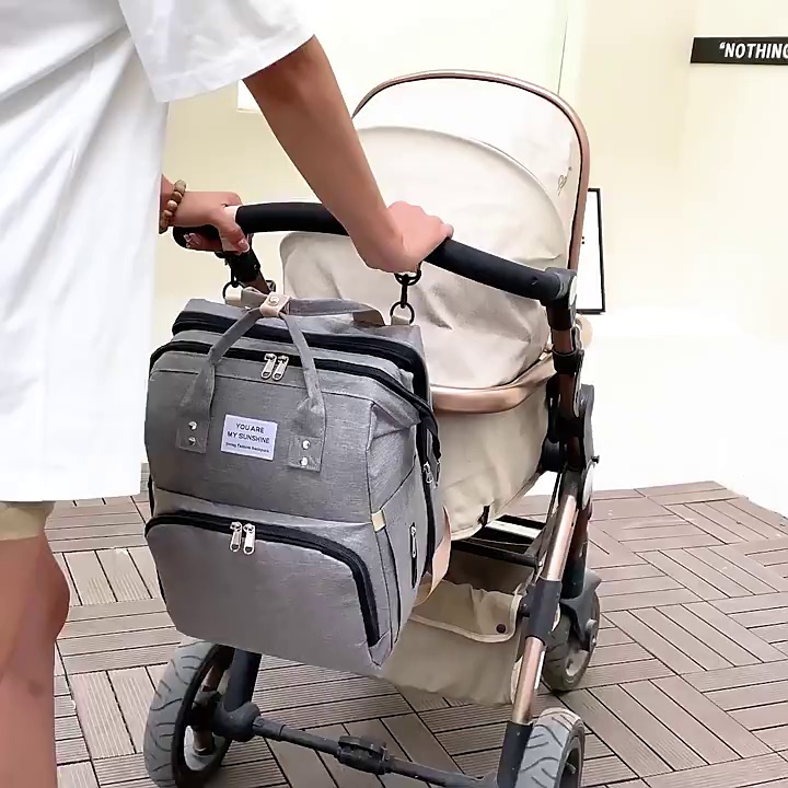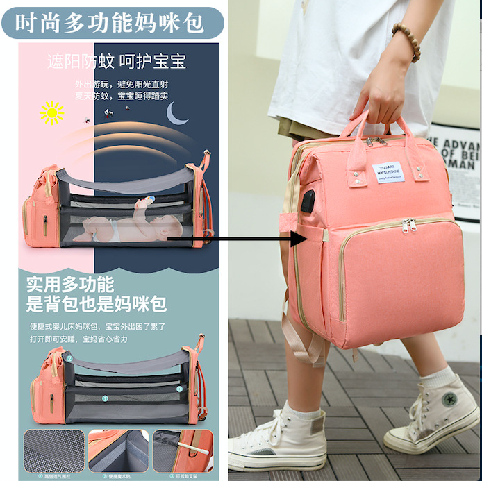 Fashion Mummy Bag Portable Baby Crib Baby Diaper Bag Baby Stroller Bottle Insulation Large Capacity Mummy Backpack 中文版