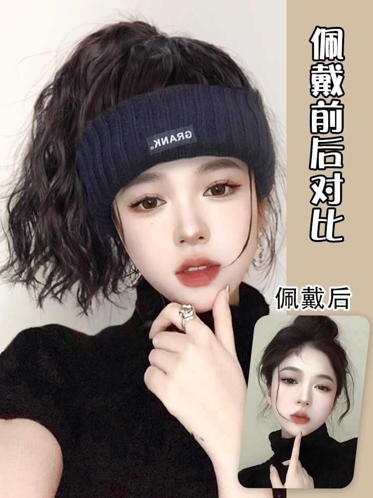 black knitted small curls brown black