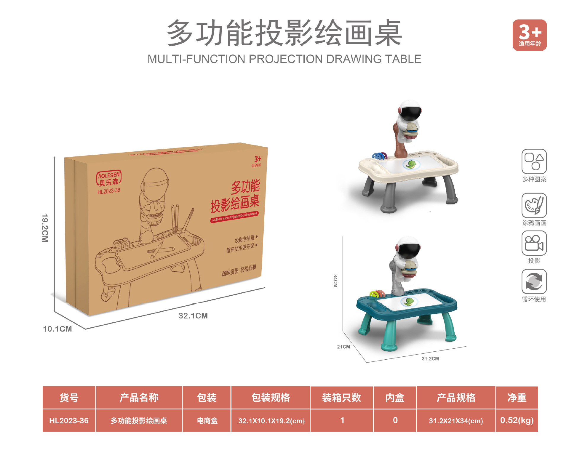 Standard equipment: (12-color pens, 6 projection wheels with a total of 48 patterns, 1 art notebook)