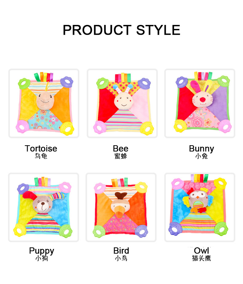 The four sides of the material will be different, allowing the baby to experience different fun, and the four corner teething toys are convenient for chewing.