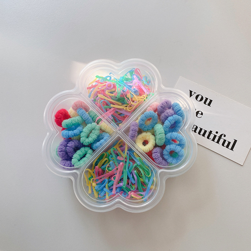 两款装的毛巾圈约50条,一次性皮筋约300条