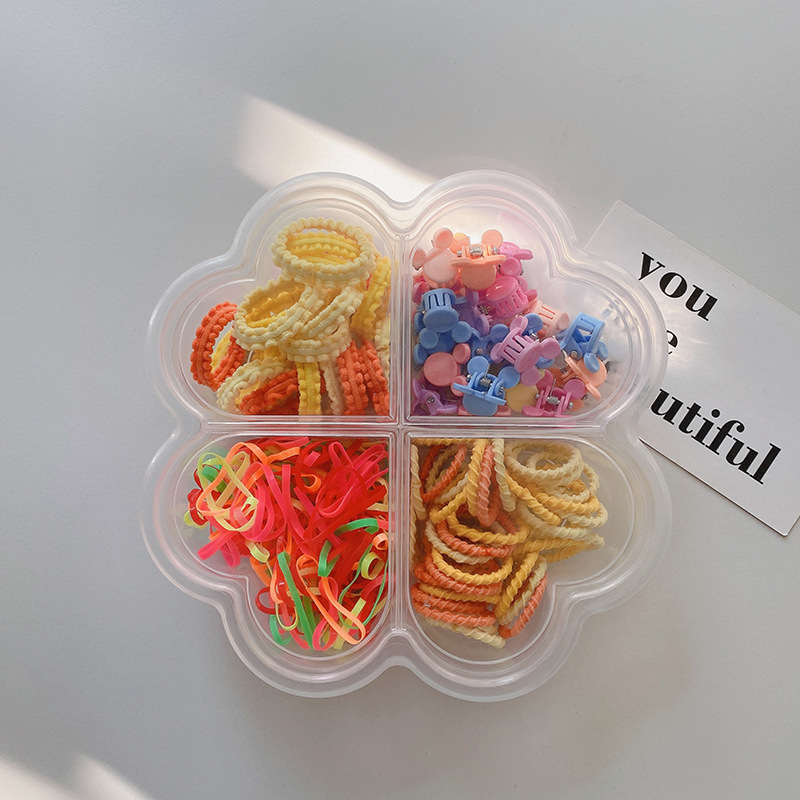 四款装的一次性皮筋约150条,花边发圈约20 罗纹皮筋约40 小抓夹约20个