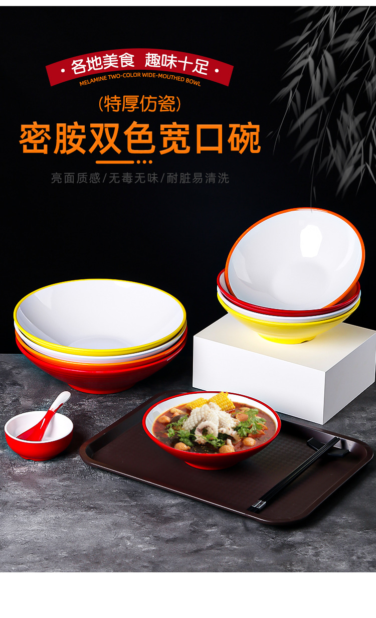melamine two-color wide-mouth noodle bowl ramen bowl noodle shop special imitation porcelain thickening large spicy hot bowl maocai bowl wholesale
