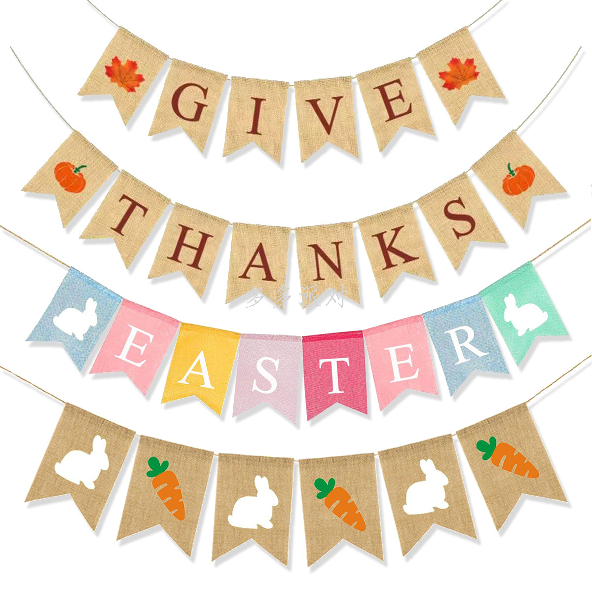 cross-border holiday decoration linen hanging flag thanksgiving easter graduation wedding birthday linen banner wholesale customization 中文版
