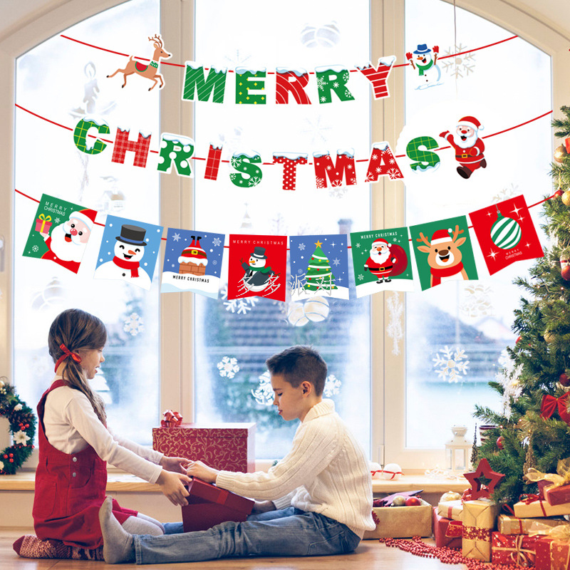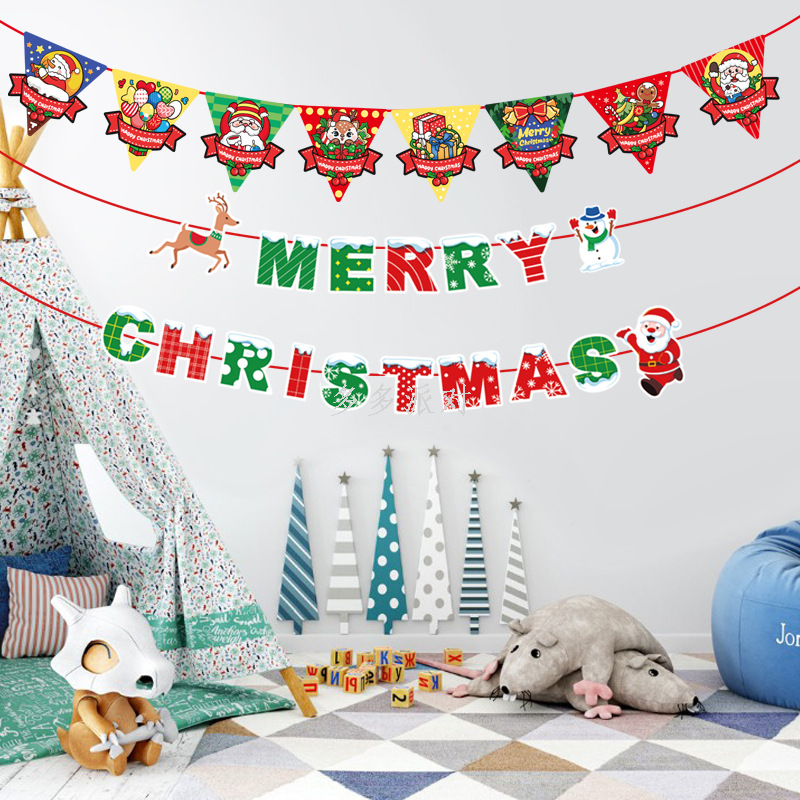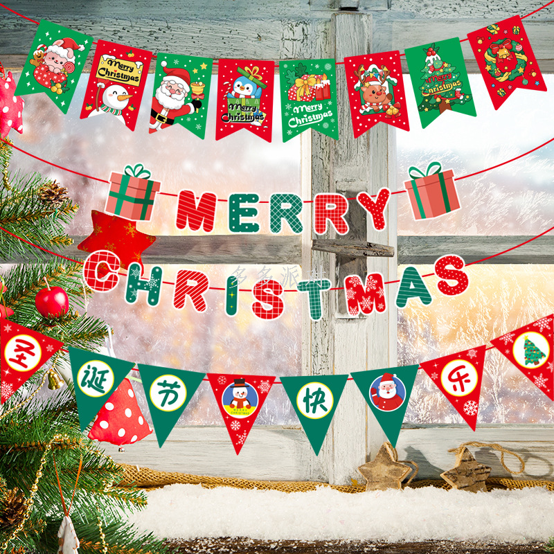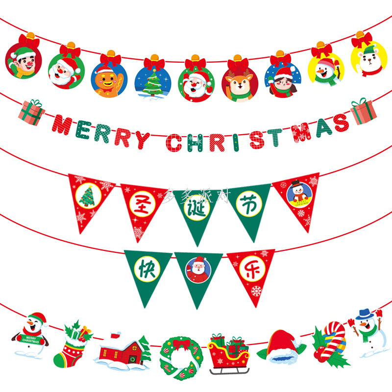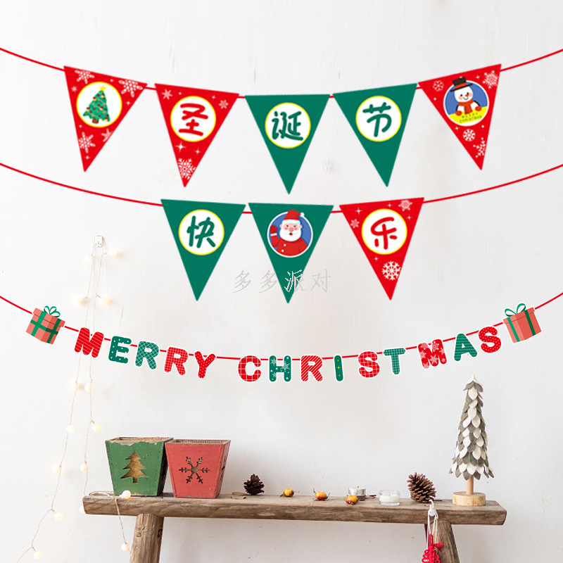 new felt christmas hanging flag christmas party decorations non-woven fabric flag shopping mall dress up felt pendant 中文版