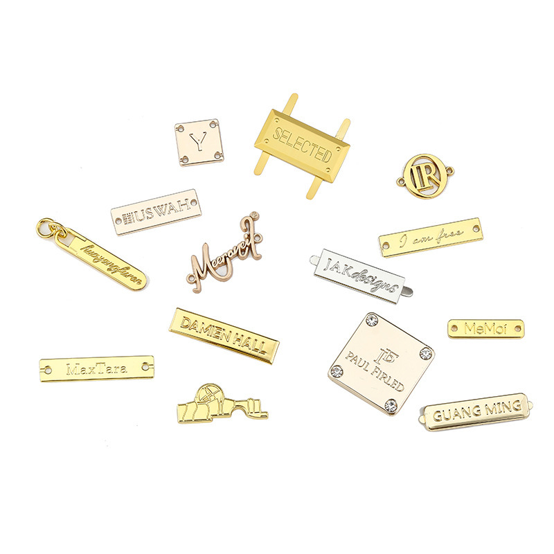 Metal sign with legs, lettering, zinc alloy, press cast handbag logo, electroplated hand stitched badge, custom-made