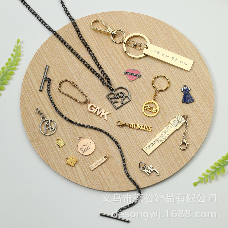 Custom metal key chains with metal accessories, zinc alloy cartoon jewelry, custom alloy painted leather bag hooks