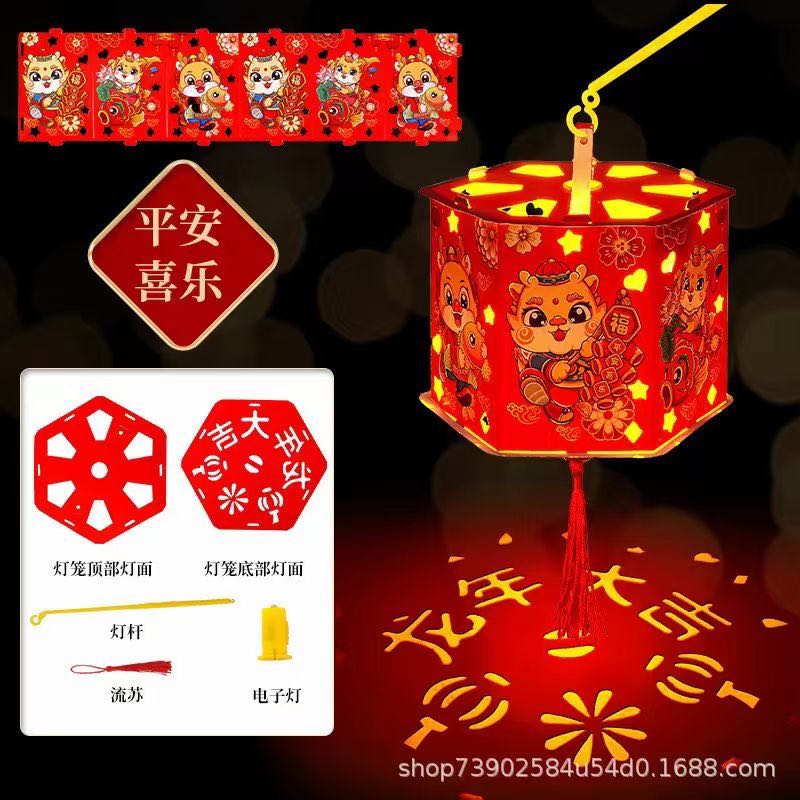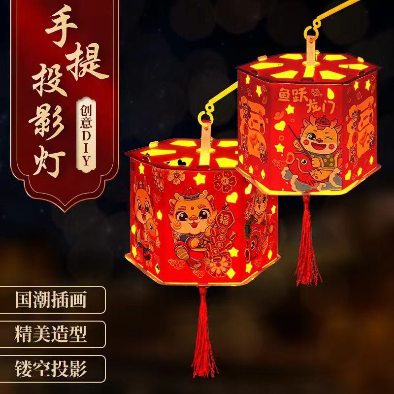 2024 dragon year cartoon projection lantern children's portable luminous handmade diy chinese lantern revolving scenic lantern portable lantern 中文版