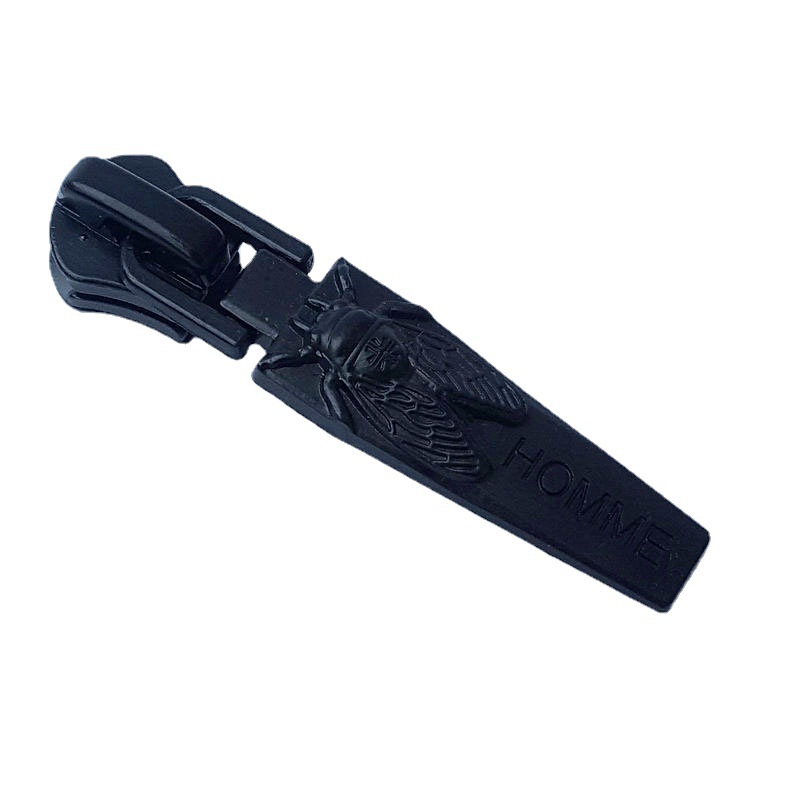 Customized metal pull tabs with zinc alloy corrosion relief process, metal zipper heads with 3rd size nylon double-sided logo, customized