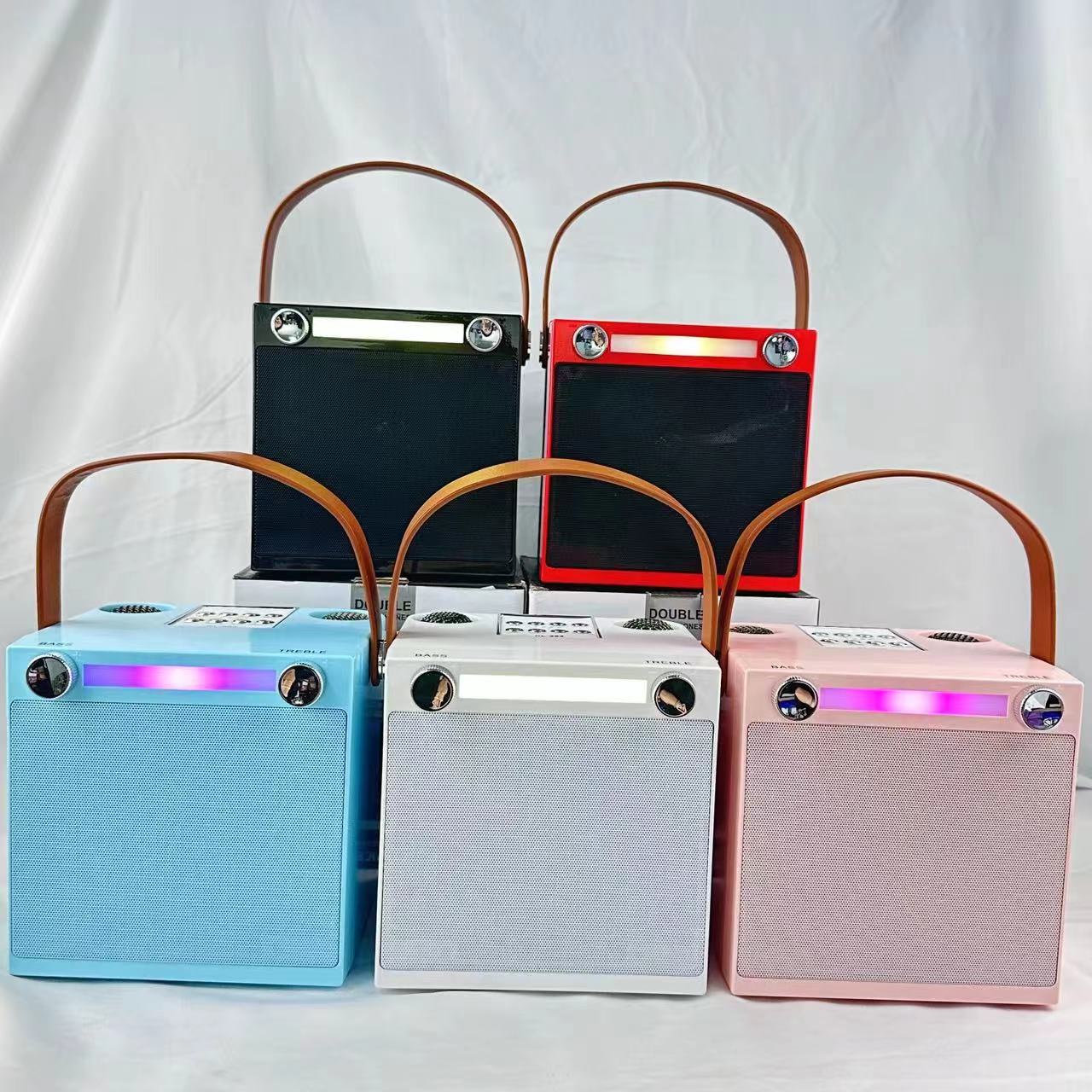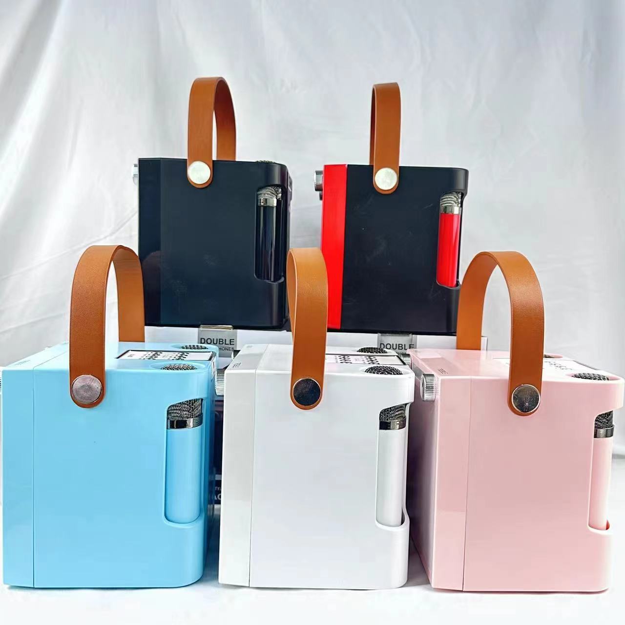 0211 black/white/pink/blue hidden dual microphone tf usb bt aux wireless bluetooth karaoke speaker 中文版