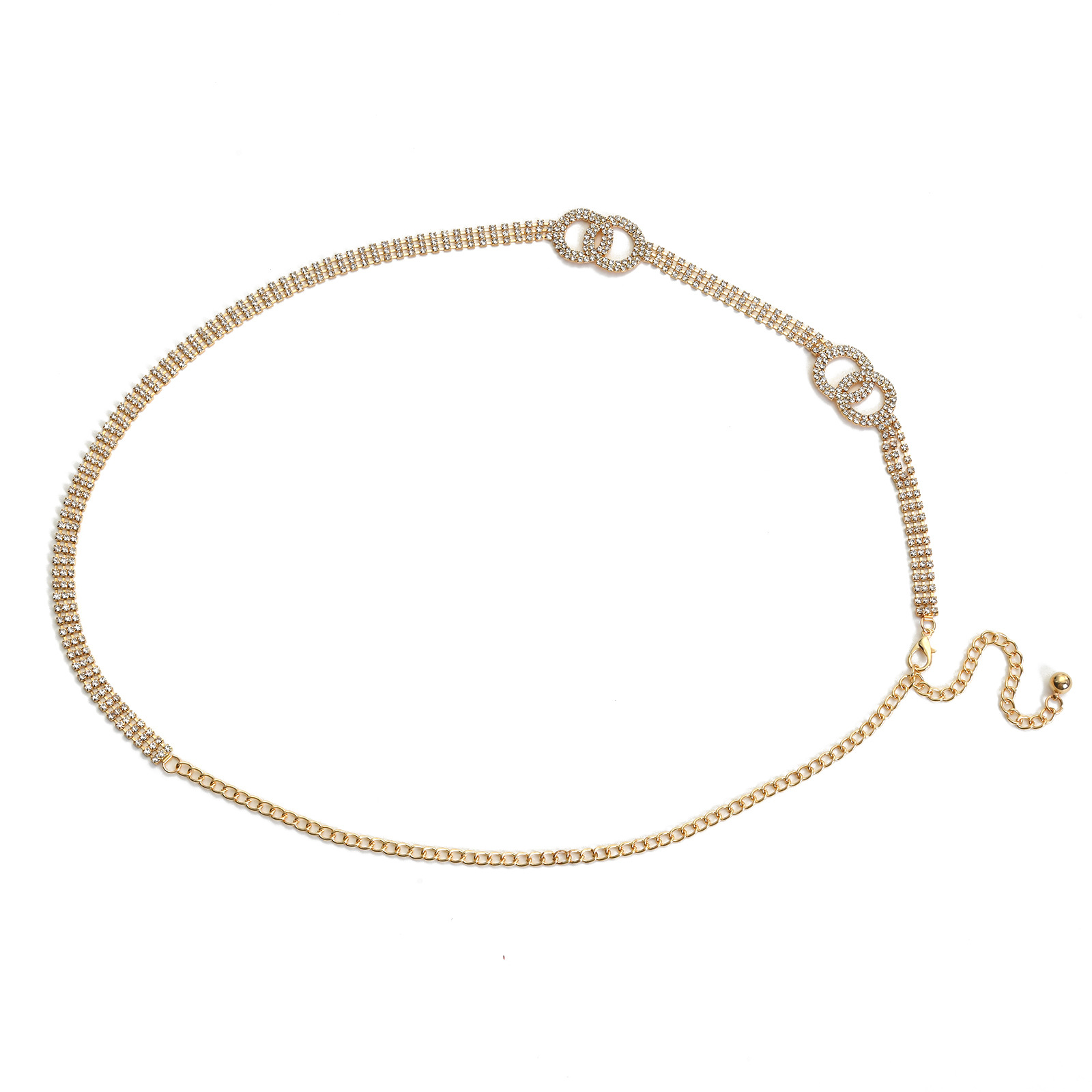 2 double-ring rhinestone waist chain gold