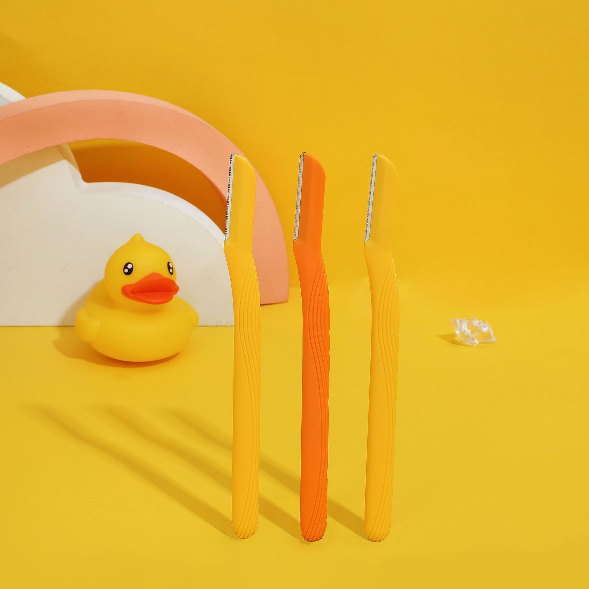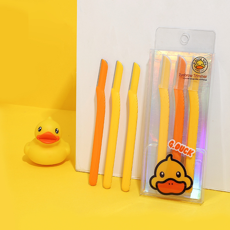 small yellow duck series non-slip handle three eye-brow knife suit eyebrow shaping tools stainless steel eyebrow scraper wholesale 中文版