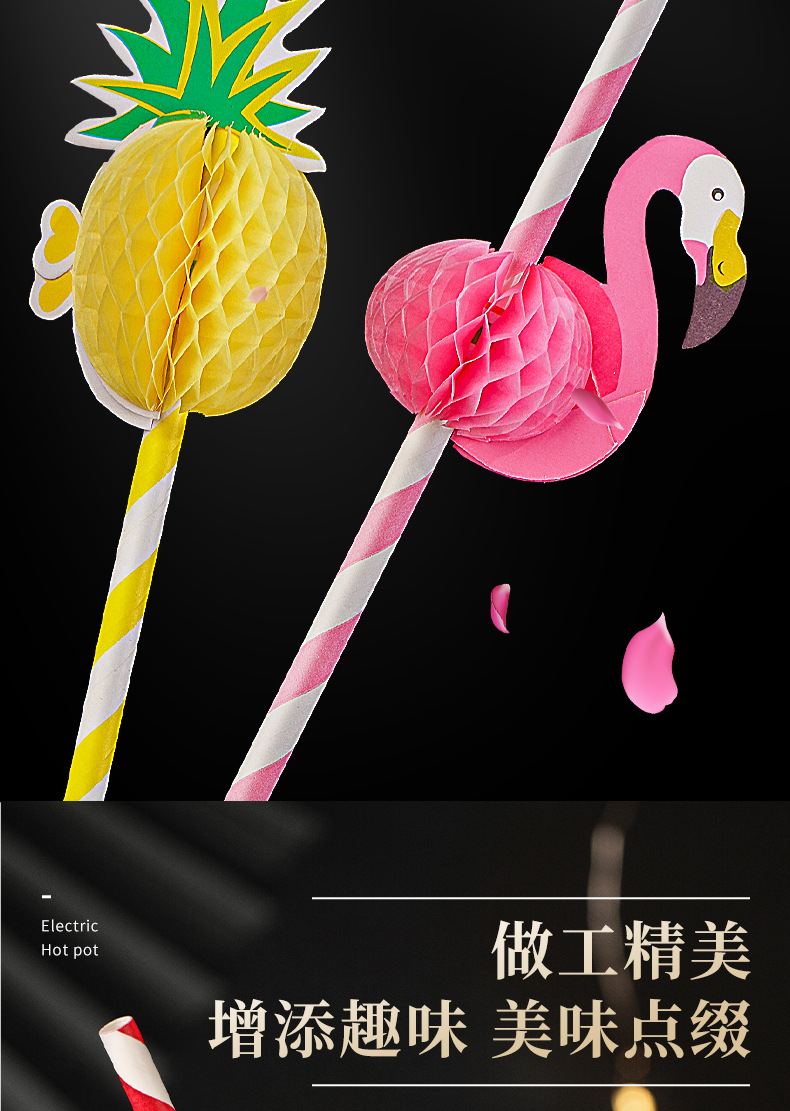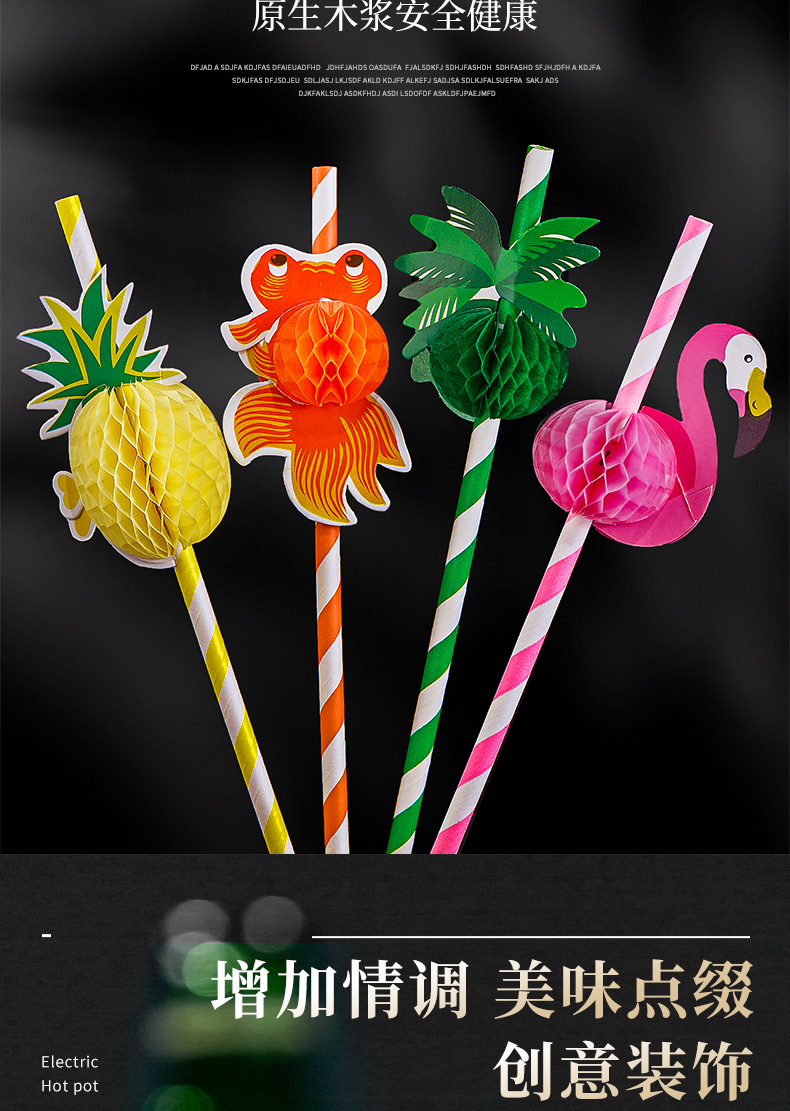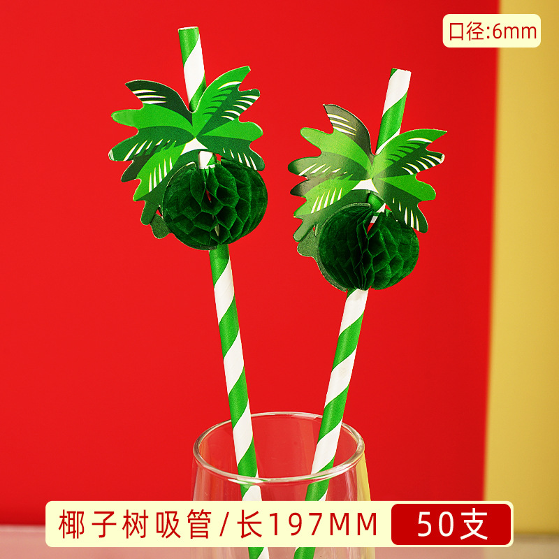 Paper Sucker Disposable Creative Party Internet Celebrity Pineapple Small Umbrella Straw Juice Decorative Art Modeling Coconut Straw 中文版
