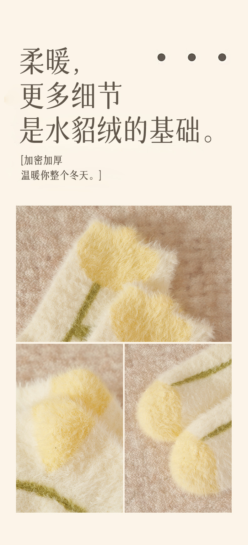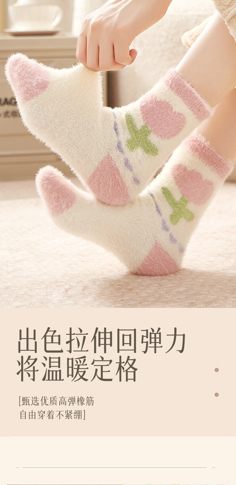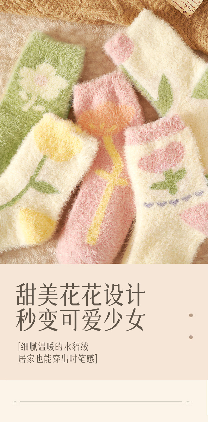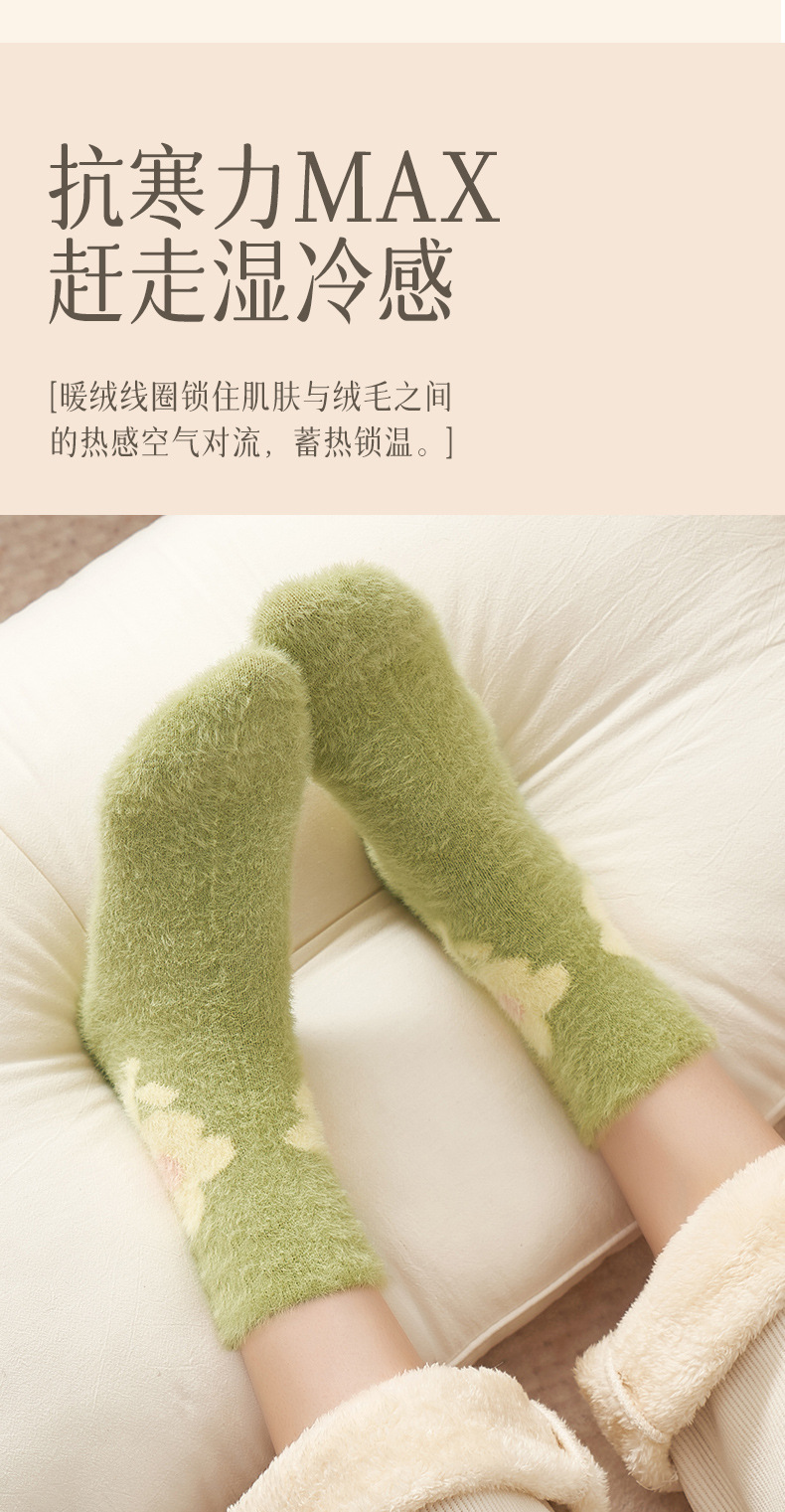 Autumn and Winter Mink Fur Socks for Women Thickened Fleece-lined Warm Japanese Flower Coral Fleece Zhuji Room Socks